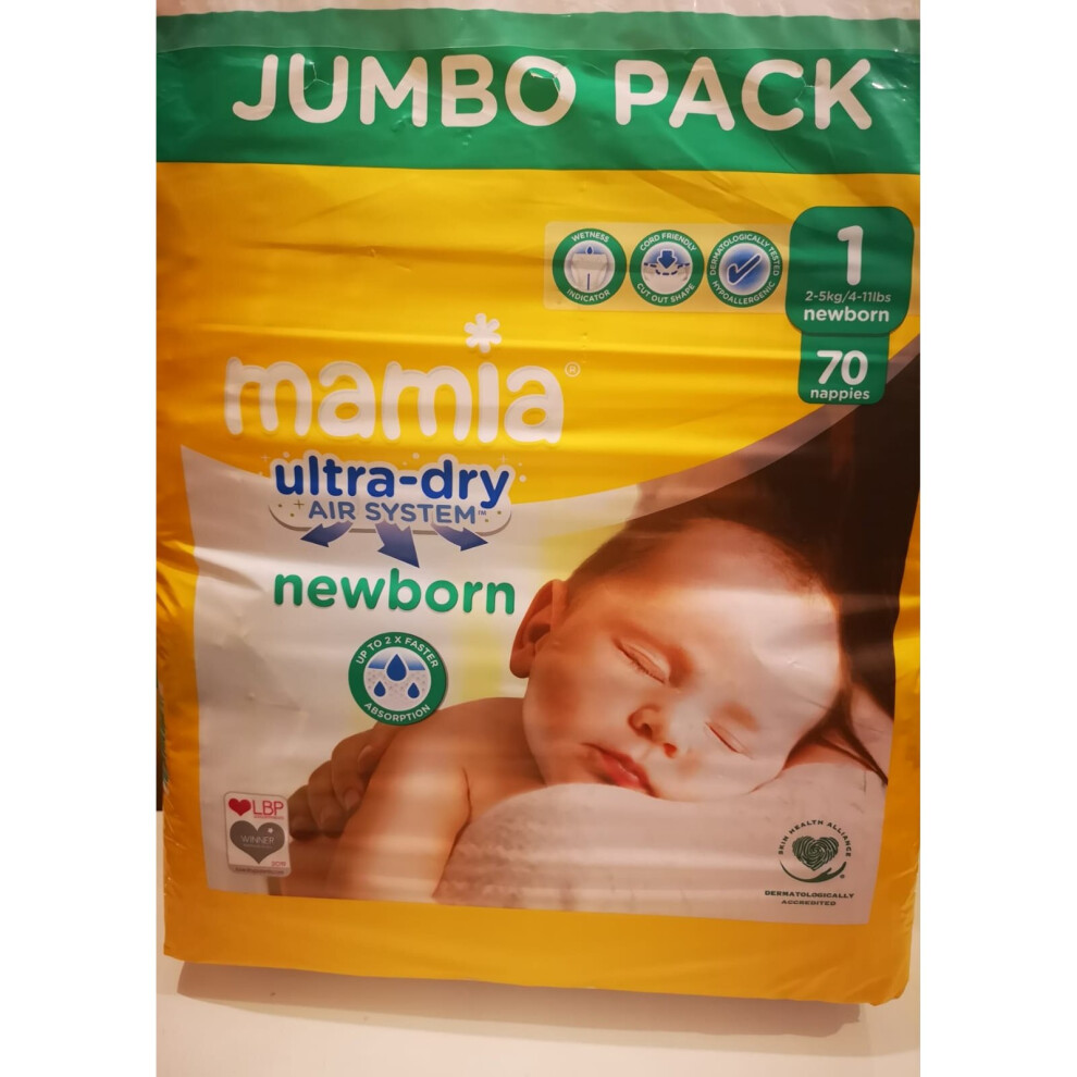 Newborn Nappies Mamia Size 1 70 Jumbo pack & Free Baby Wipes-Dermatological tested, Hypoallergen -Super stretchy sides -Distributes liquid evenly -Wetness indicator -Up to 2x faster absorption -Cord friendly... £19.11OnBuy.comDelivery: in United Kingdom ReportBuy!
