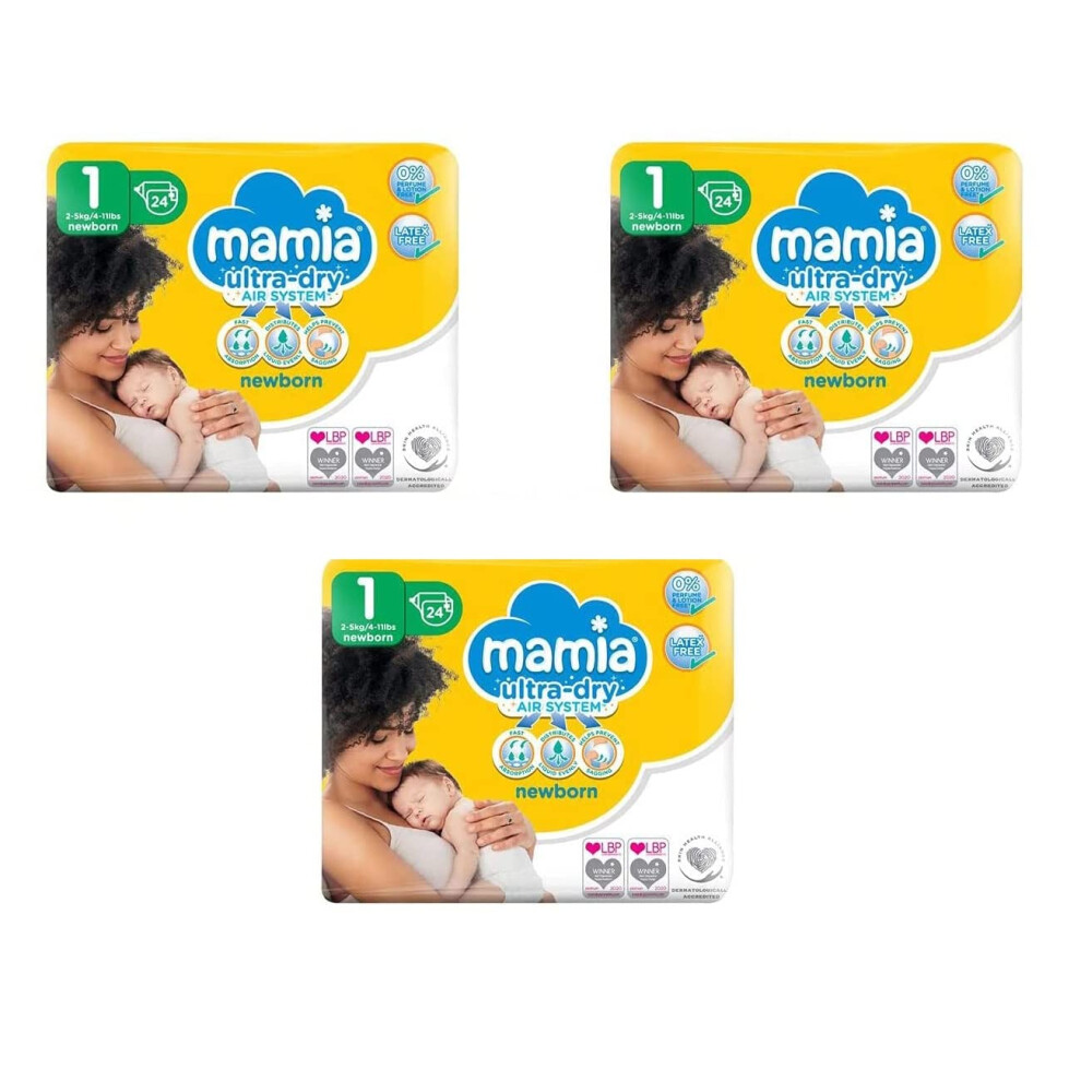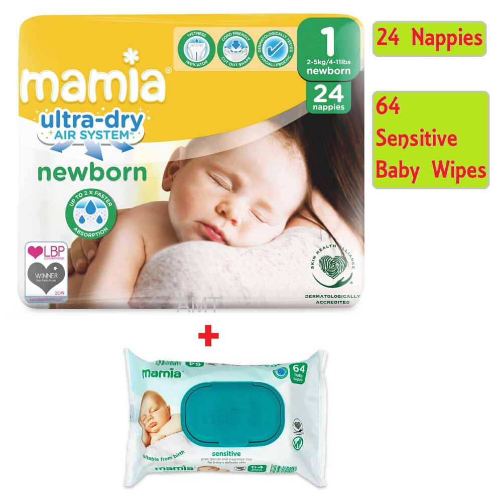 Mamia Newborn Size 1 + Free Baby Wipes | Ultra-Dry Air System, Wetness Indicator, Hypoallergenic (24 Nappies)Mamia Ultra-dry Air System Newborn Size 1 Nappies - 24 Nappies + Free Mamia Sensitive Baby Wipes Keep your newborn comfy and protected with Mamia...Price from £8.54 up to £9.37 Compare prices and buy Mamia Newborn Size 1 + Free Baby Wipes | Ultra-Dry Air System, Wetness Indicator, Hypoallergenic (24 Nappies)Onbuy.com (United Kingdom) →£9.00Onbuy.com (United Kingdom) →£9.00OnBuy.com (United Kingdom) →£9.00Onbuy.com (United Kingdom) →£9.00Compare prices4→