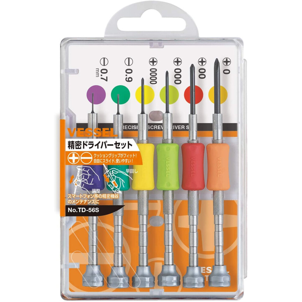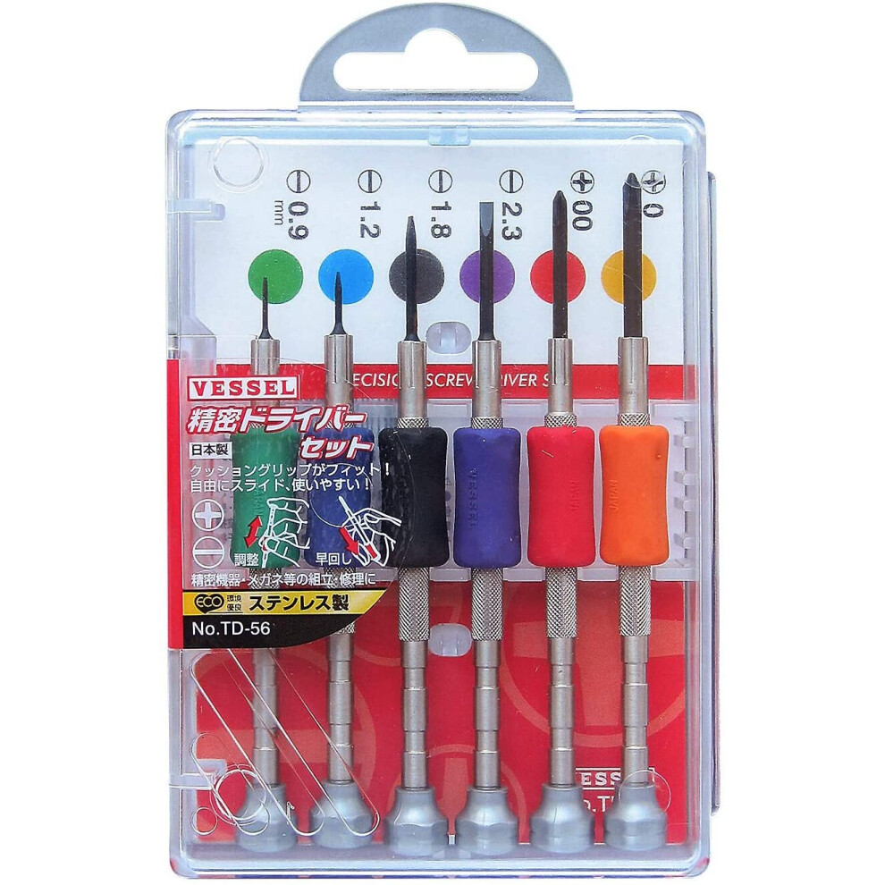 Vessel Precision Set TD-56 / -0.9, -1.2, -1.8, -2.3, 00, 015.64Buy!£OnBuy.comDelivery: in United Kingdom ReportStyle Name: TD-56 / Phillips & Flat Precision screwdriver set with grip (6 pieces). Unique design with a "colour grip" which ensures...