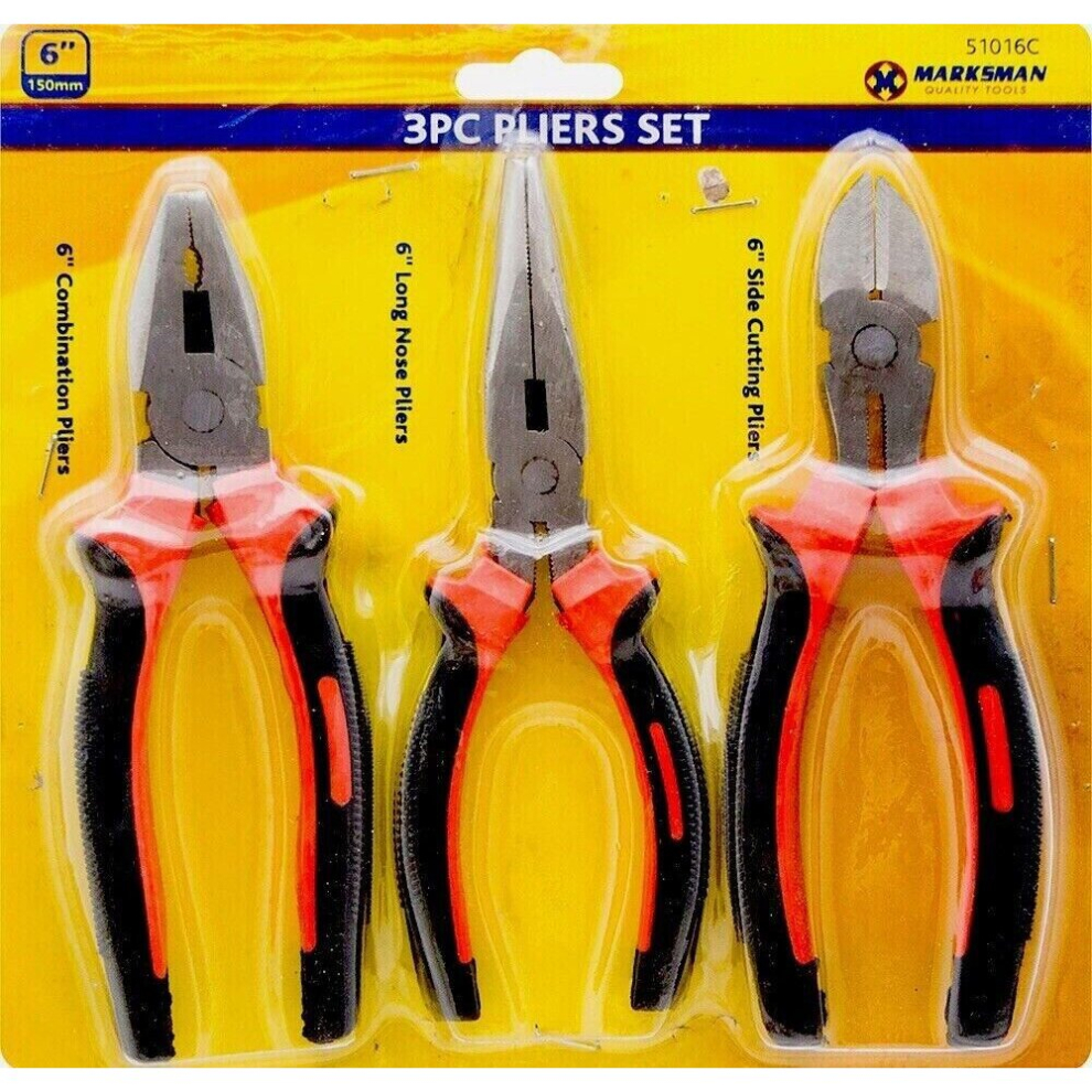 Marksman 6'' inch HEAVY DUTY 150mm COMBINATION LONG NOSE SIDE CUTTER SET DIY 3 pcsDrop forged, heat treated Heavy duty PVC handles with slip guards Anti Slip vinyl Double Dipped Grips Size: 6" Combination Pliers Weight -... £9.99OnBuy.comDelivery: in United Kingdom ReportBuy!