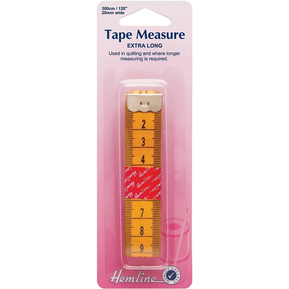 HEMLINE H256 Metric & Imperial Extra Long Quilter's Tape Measure 300cm/120in14.67Buy!£Onbuy.comDelivery: in United Kingdom ReportExtralong3metre/120"length Âdouble-sided Âmetric/imperialtapemeasure. Usedforquilting,tailoringandhomedecorating.
