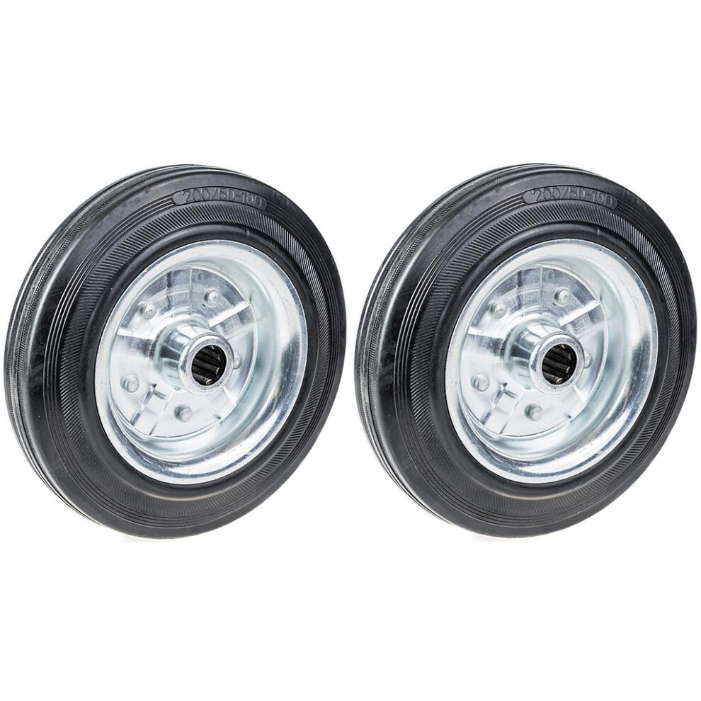 Parnells 200mm solid rubber wheel, steel centre, 200kg each, 8" truck wheels - set of 2 EC1754Set of 2 - Wheels with black solid rubber on pressed steel roller bearing centre.Hardness of wheel tread 85 Shore A.Item dimensions as follows:Wheel... £32.27Onbuy.comDelivery: in United Kingdom ReportBuy!