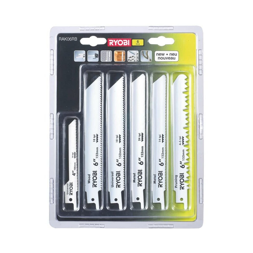 Ryobi RAK06RB Reciprocating Saw Blade Set, 6 Piece24.81Buy!£OnBuy.comDelivery: in United Kingdom ReportMain Description The Ryobi RAK06RB are high-quality blades for reciprocating saws ideal for cutting wood, drywall, plastic, plywood and metal both...
