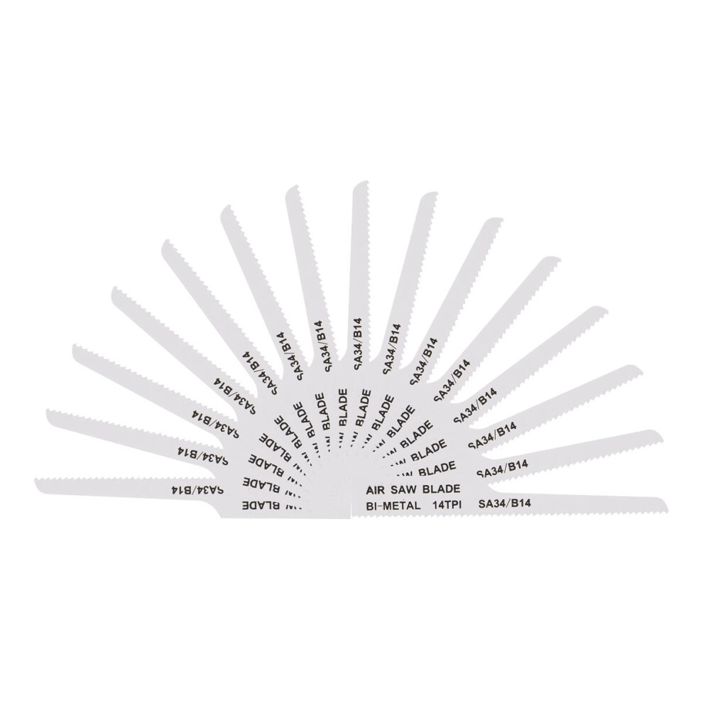 Sealey 94.5mm HSS Air Saw Blade 14tpi - Pack of 15 SA34/B1415from £22.55 up to £36.81 Compare prices2→HSSAirsawbladessuitableforSealeyandotherleadingmakesofairsaw.Suppliedinapackof15. HSSAirsawbladessuitableforSealeyandotherleadingmakesofairsaw.