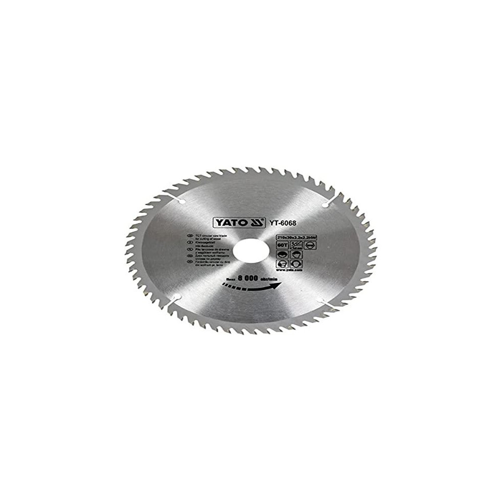 Yato Professional YT-6068 - Carbide Tipped Circular Saw Blade 210 x 60 x 30 mm15.87Buy!£OnBuy.comDelivery: in United Kingdom ReportYato professional robust tungsten carbide circular saw blade for wood, worktops and plastic. High number of teeth (60) for clean cuts. Diameter size...