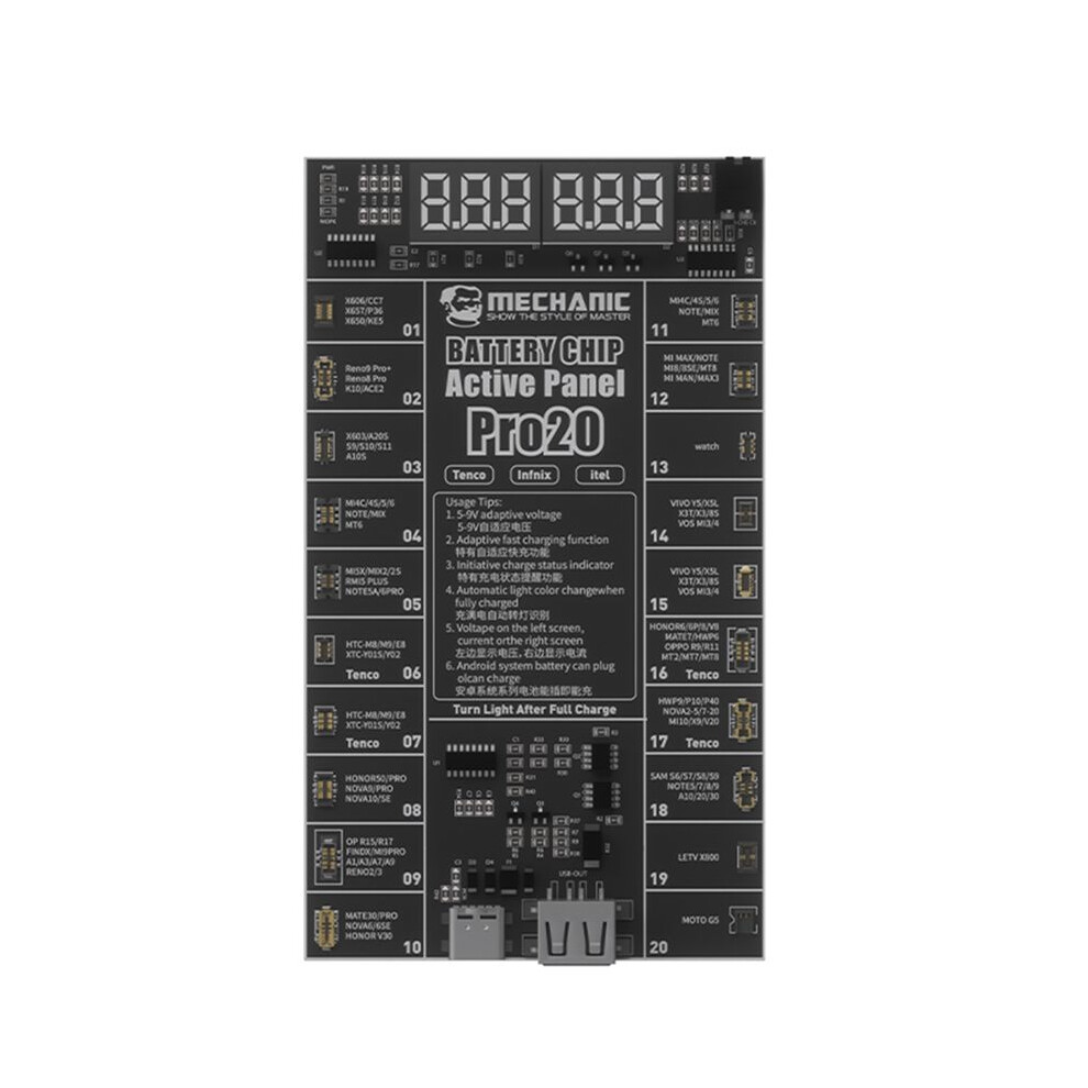 MECHANIC PRO 20 Battery Activation Board for HW SAM XM OPPO VIVO IQOO TRANSSION Android 400+ Models Phone Activation18.45Buy!£OnBuy.comDelivery: in United Kingdom ReportConvenient Multiple Interfaces: Equipped with both Type - C and USB interfaces, which can be used as needed, facilitating charging and output. Broad...
