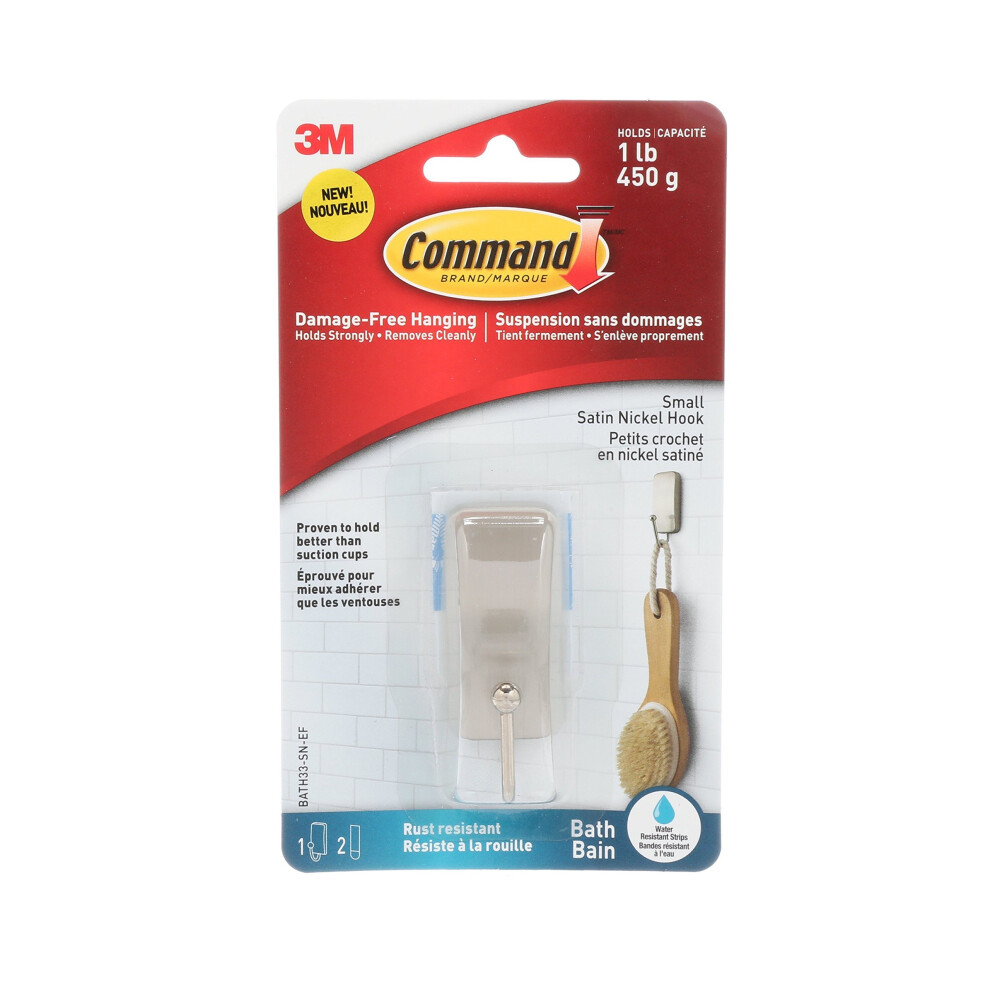 3M Command Small Bathroom Hook, Satin Nickel, Damage-Free BATH33-SN-ES17.67Buy!£Onbuy.comDelivery: in United Kingdom ReportCommand Small Bathroom Hook, Satin Nickel, Damage-Free Water resistant - holds strongly in wet and humid conditions,ideal as small towel hooks and...