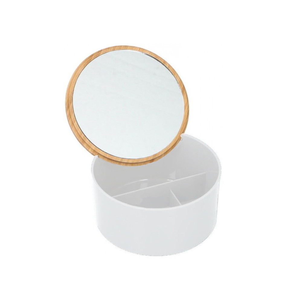 Alpina Bamboo Cosmetic Organiser Cotton Bud Swab Pad Makeup Holder Jar Dispenser Storag (3 Section With Mirror Lid)Makeup Organiser Cosmetic Cotton Pads Swab Holder Box Clear Acrylic With Bamboo Lid Beauty Makeup Cotton Wool Bud Ball Bathroom Storage Jar Dispenser, £7.25Onbuy.comDelivery: in United Kingdom ReportBuy!