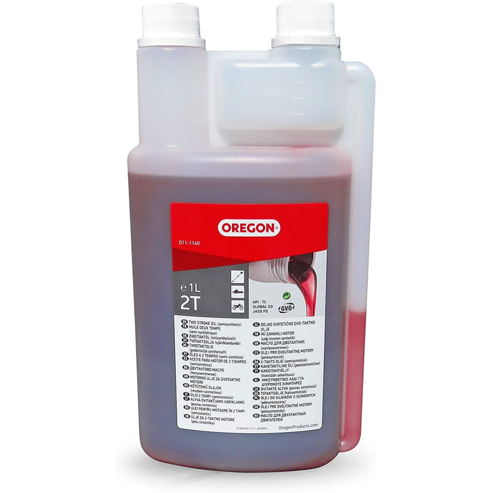 Oregon O11-1140 2T Oil Double Neck Bottle, Red, 1 LMain Description Oregon semi-synthetic 2-stroke oil comes in a double neck bottle. Oil available in red colour. Recommended for all four stroke...Price from £25.27 up to £25.47 Compare prices and buy Oregon O11-1140 2T Oil Double Neck Bottle, Red, 1 L OnBuy.com (United Kingdom) →£25.00OnBuy.com (United Kingdom) →£25.00Compare prices2→