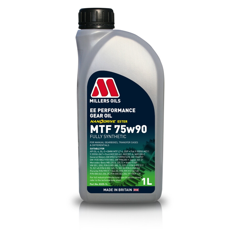 | Oil: Full Synthetic Oil; Oil Viscosity Classification SAE: 75W-80; Capacity [litre]: 1; Vehicle type: Car; Transmission Type: for manual transmission; Packing Type: Bottle; Specification: API GL-5; Manufacturer recommendations: BMW MTF LT-2, Fiat 9.55550-MZ12, Fiat 9.55550-MZ10, Ford WSS-M2C200-C3, GM 1940768, Honda MTF-III, Land Rover MTF-94, Nissan MT-XZ, Subaru SOA748V0100, PSA B71 2330, PSA 9730 A2, Volvo 1161681, Volvo 97309; Product line: XF Premium MTF; Liquid: ; Transmission Number: PK4 6/1, TL4 6/1, 5/1, IB5 5/1, B6 6/1, 0AJ 6/1, DSG 0AM (DQ200) 7/1, 02S 6/1, 02Q 6/1, JR5 5/1, F6MBA 6/1, BE4R 5/1, MCP 6/1, W5MBB 5/1, MCM 6/1, ML6C 6/1, 6/1, R65 5/1, 0BB 6/1, 0A6 6/1, 02T 5/1, 02R 5/1,… | Price from £17.88 up to £17.96 Compare prices and buy Millers OILS 8375-1 Transmission Oil 75W-80, Capacity: 1l, Full Synthetic Oil Compare prices2→ |