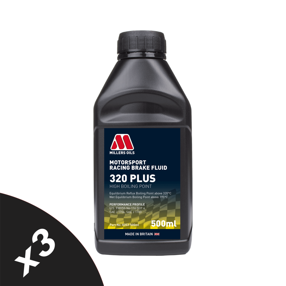 Millers Oils DOT 4 Motorsport Racing 320 SAE J1704 3x500ml 8353KGx3MotorsportRacingBrakeFluid320PLUS-500ml ... £73.99OnBuy.comDelivery: in United Kingdom ReportBuy!
