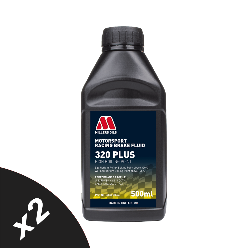Millers Oils DOT 4 Motorsport Racing 320 SAE J1704 2x500ml 8353KGx2MotorsportRacingBrakeFluid320PLUS-500ml ... £50.99OnBuy.comDelivery: in United Kingdom ReportBuy!