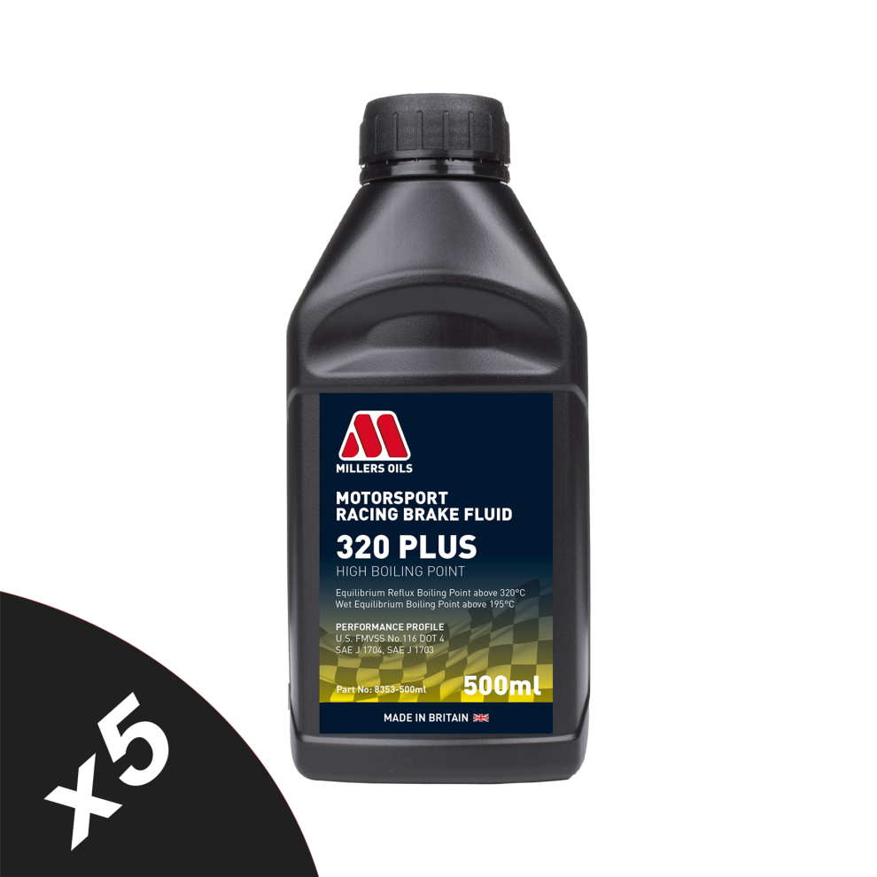 Millers Oils DOT 4 Motorsport Racing 320 SAE J1704 5x500ml 8353KGx5MotorsportRacingBrakeFluid320PLUS-500ml ... £117.49OnBuy.comDelivery: in United Kingdom ReportBuy!