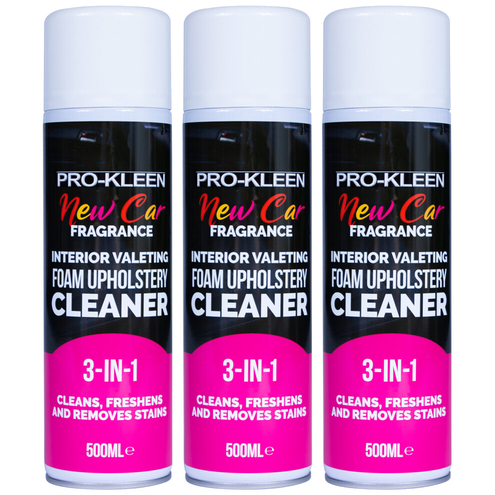 Pro-Kleen Interior Car Upholstery Foam Cleaner New Car Scent 272000 (3 x 500ml)13.95Buy!£OnBuy.comDelivery: in United Kingdom ReportRemoves Stains & Grime Pro-Kleen's Interior Valeting Foam Upholstery Cleaner removes stains and grime quickly and easily. The intensive...