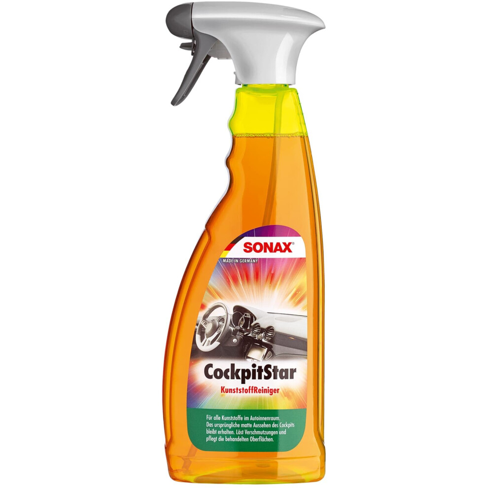 Sonax 02494000 Cockpit Star 750 ml 249400013.20Buy!£OnBuy.comDelivery: in United Kingdom ReportProduct Description SONAX CockpitStar with trendy, fresh fragrance. Cleans and cares for all plastic parts in the car. Anti-static and dust-repellent.