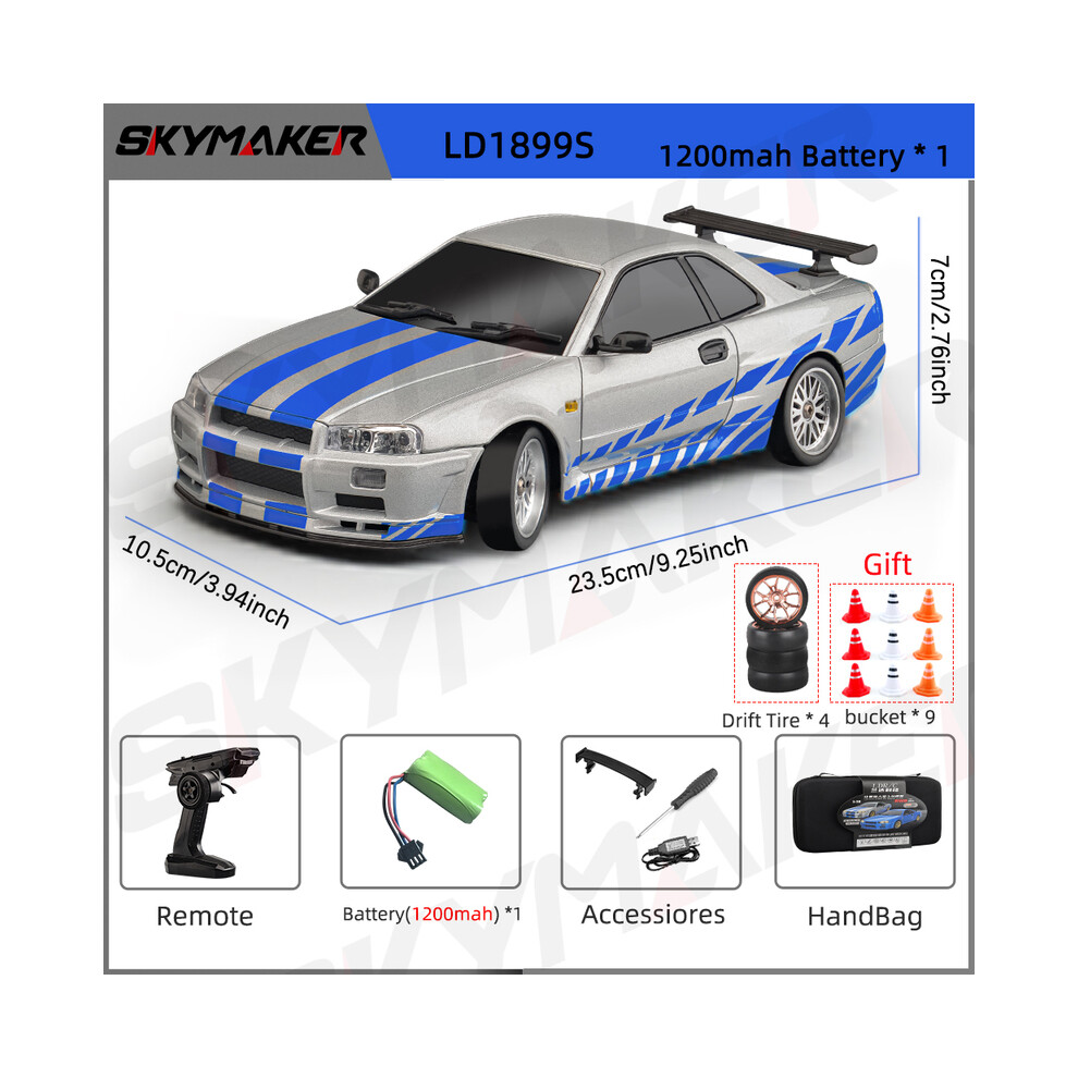 MAXPOWER Skymaker LD1899 1/18 RC Drifting Car GTR R34 2.4GHz RWD with Gyroscope on-Road Alloy Body Shell Remote (B-1B1200-9RB-YX01J)Noticeï¼ ForSilvercolor,thereare2differentBlueversion, Oneisdeepblue,anotheroneisskyblueãItwillsendoutrandomly. £160.32Onbuy.comDelivery: in United Kingdom ReportBuy!