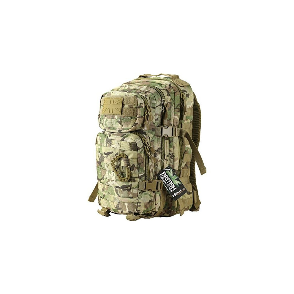 Kombat UK Small Molle Assault Pack 28 Litre - BTP Camouflagefrom £31.99 up to £40.39 Compare prices3→Padded airflow back system 1 x large main compartment 2 x front utility pockets Large front molle Velcro ID platform Heavy duty zips Internal aqua...
