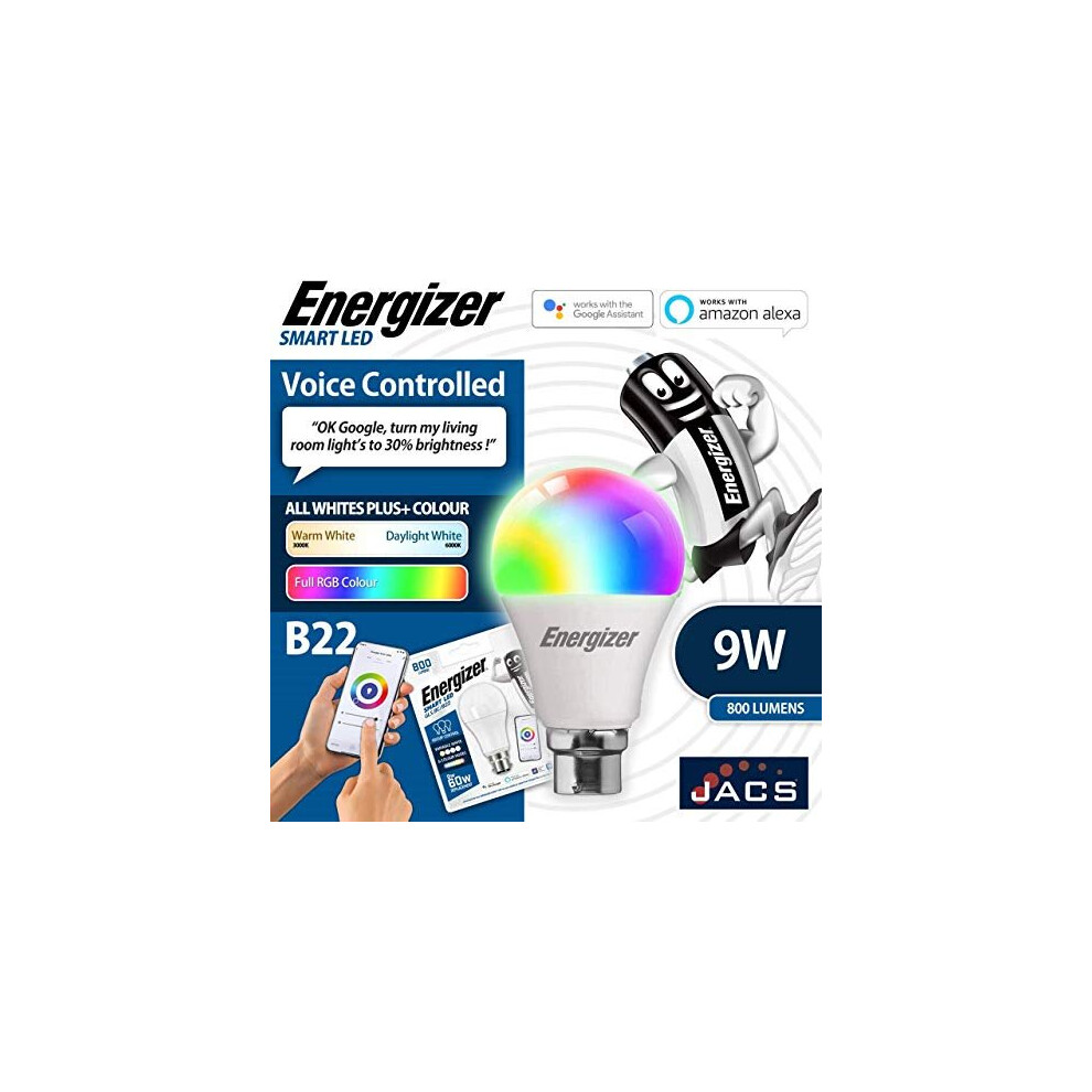 Energizer JACS Smart B22 (BC) GLS - 9.2W - Colour Changing - 806LMJACS ENERGIZER Smart B22 (BC) GLS - 9.2W - Colour Changing - 806LMPrice from £8.49 up to £9.29 Compare prices and buy Energizer JACS Smart B22 (BC) GLS - 9.2W - Colour Changing - 806LM Amazon.co.uk (United Kingdom) →£9.00Onbuy.com (United Kingdom) →£8.00Amazon.co.uk (United Kingdom) →£9.00Compare prices3→