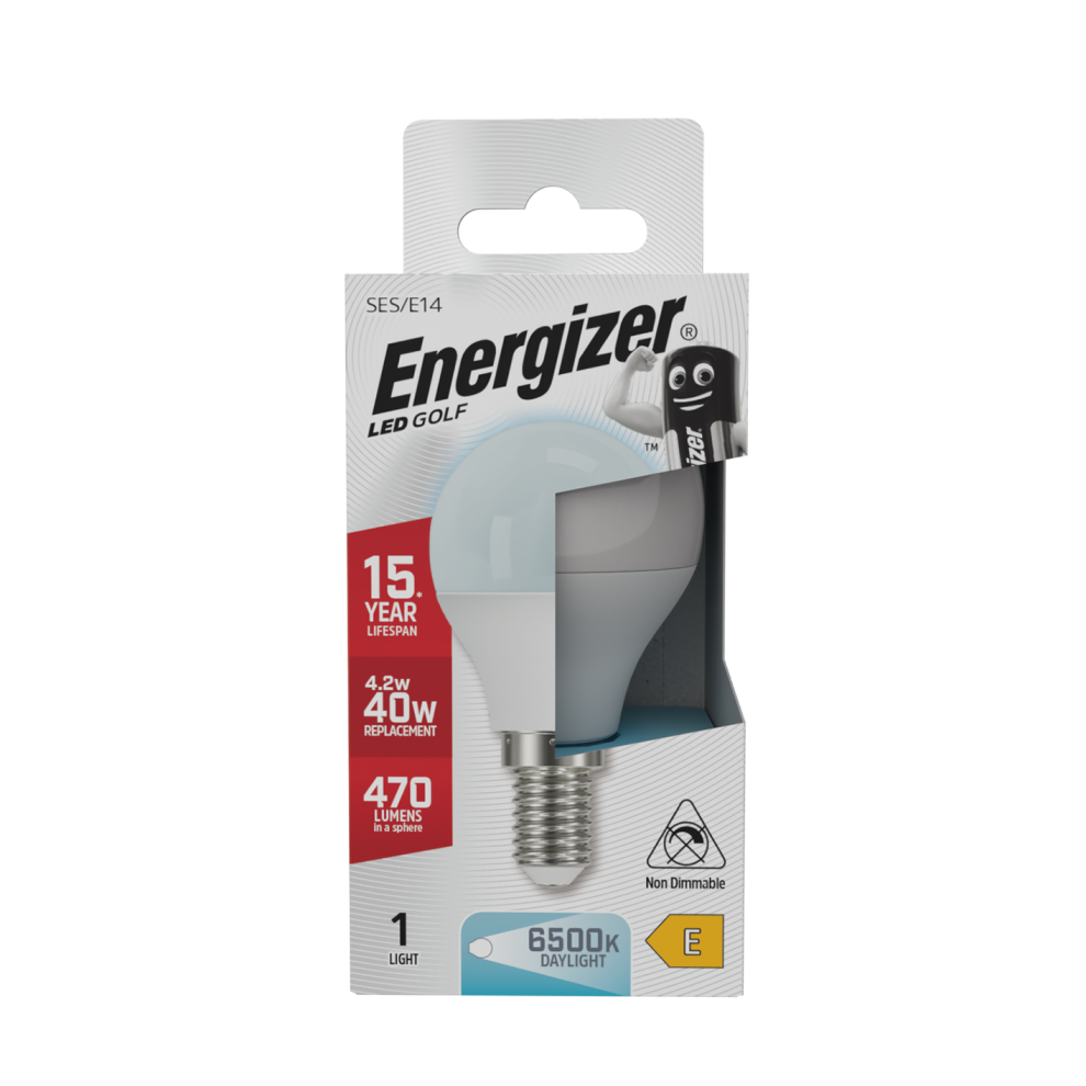 Energizer LED Golf E14 (SES) Bulb 470lm 4.2W 6500K 1 Pack ENER326 (Daylight)The Energizer LED Golf Ball E14 470 lumen 4.2 watt 6500K Daylight Light Bulb Pack of 1 is a bright and efficient solution for small fixtures in...Price from £4.09Compare prices and buy Energizer LED Golf E14 (SES) Bulb 470lm 4.2W 6500K 1 Pack ENER326 (Daylight)Amazon.co.uk (United Kingdom) →£4.00Onbuy.com (United Kingdom) →£4.00Compare prices2→