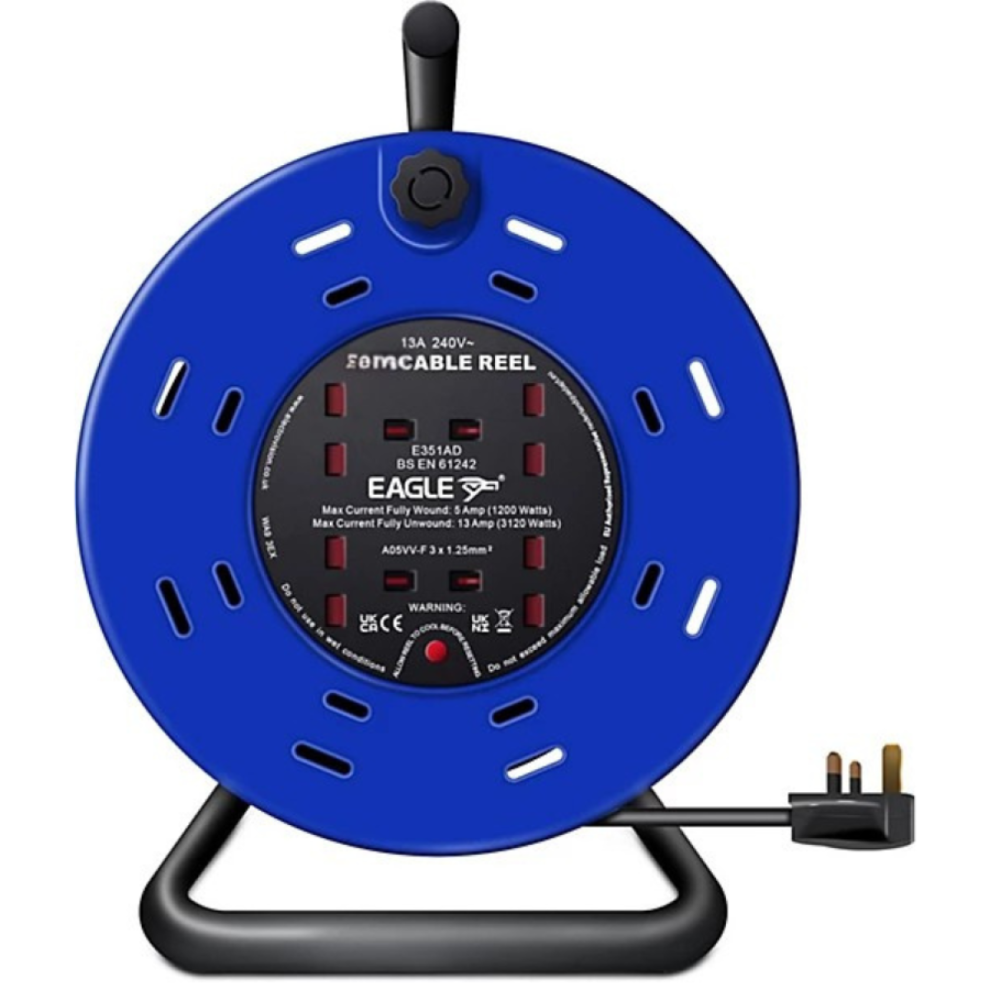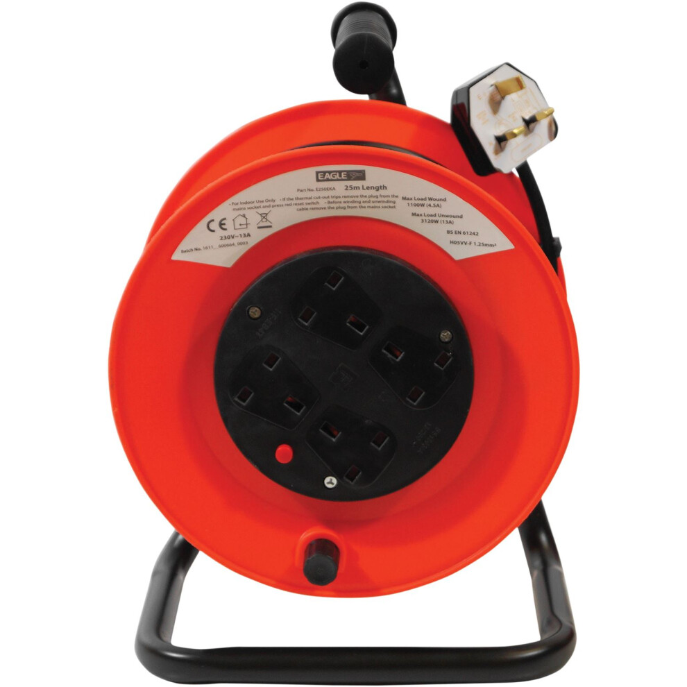 Eagle 25M Robust 4 Gang Extension Reel with Stand Red & Black E250EKAEagle 4 Socket Extension Reel A Red and Black 4 socket extension reel with stand, carry handle and Over heat protection. 4.4 A maximum current fully... £58.10OnBuy.comDelivery: in United Kingdom ReportBuy!