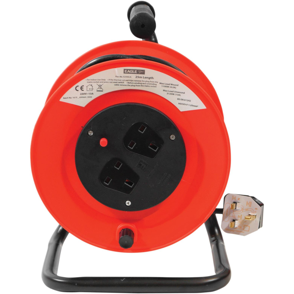 Eagle 2 Socket Extension Reel Cable Length 25MProduct Description: A Red and Black 2 socket extension reel with stand, carry handle and overload cutout with reset button. Maximum current when... £70.94OnBuy.comDelivery: in United Kingdom ReportBuy!
