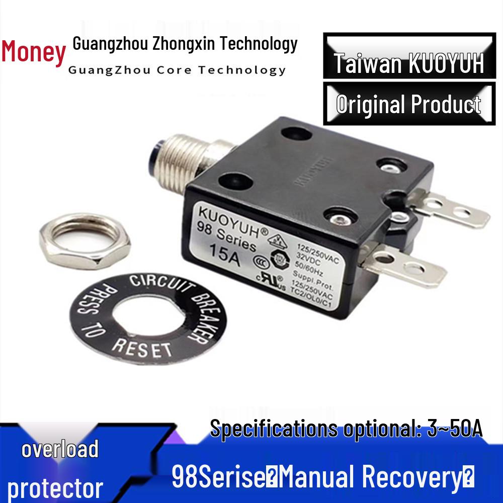 KUOYUH 98 Series Manual Reset Circuit Breaker: Overcurrent Overload Protector (3A–50A). 6A (Manual Reset)2.50Buy!£Joom UKDelivery: to United Kingdom ReportThe 98 Series Manual Reset Circuit Breaker is a reliable overcurrent and overload protector designed to safeguard electrical systems ranging from 3A to 50A. This versatile device is ideal for various more→applications, providing dependable protection by automatically interrupting power flow in the event of an overload. It features a convenient manual reset function, allowing for easy reactivation after the issue has been resolved. With its robust design and broad current range, it ensures optimal safety and performance in both residential and commercial environments. Part Number: Overload protector Type: Overcurrent protector Voltage Characteristics: Safety voltage Shape: Insert type Fuse