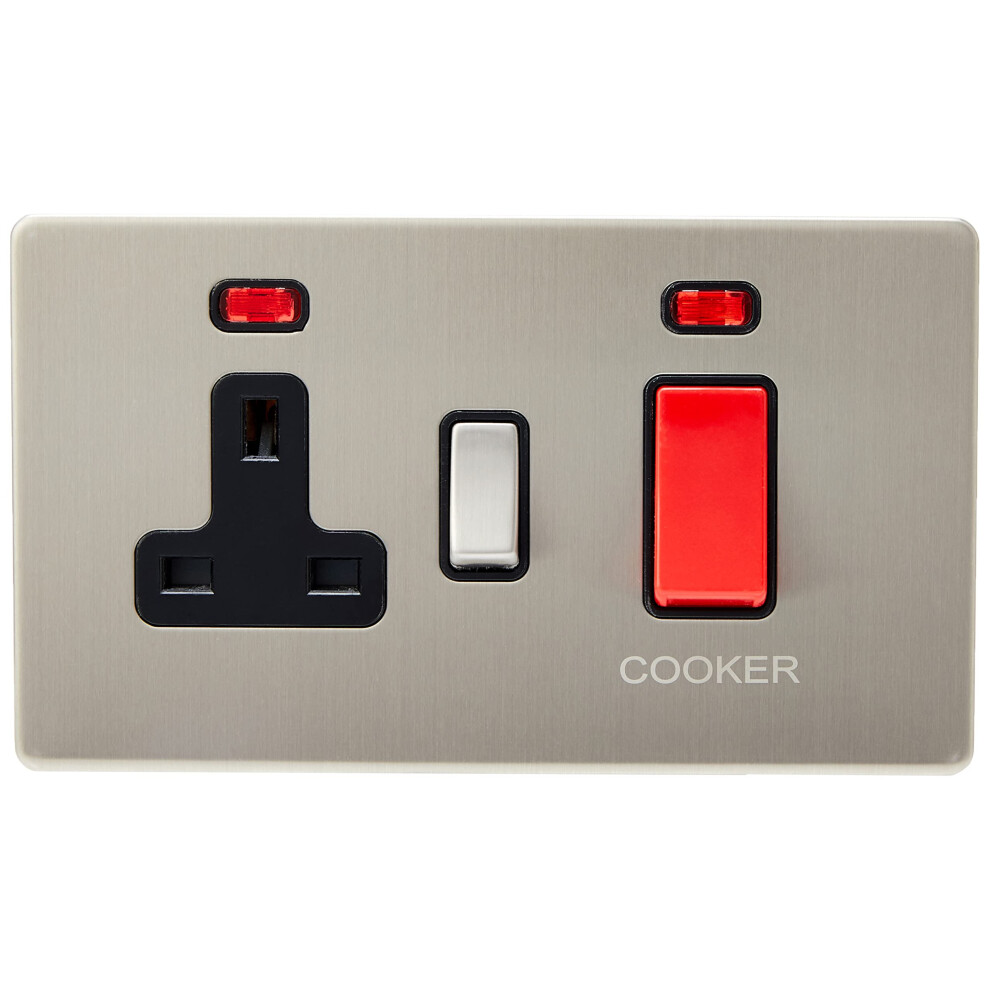 AeT SLCC2NBL Screwless Satin Chrome Flat Cooker Control Unit w/Neon Black InsertFeatures Screwless 45 Amp Cooker Switch with 13 Amp Switched Plug Socket with Neon Indicators Brushed Satin Matt Chrome Stainless Steel Effect... £28.66OnBuy.comDelivery: in United Kingdom ReportBuy!