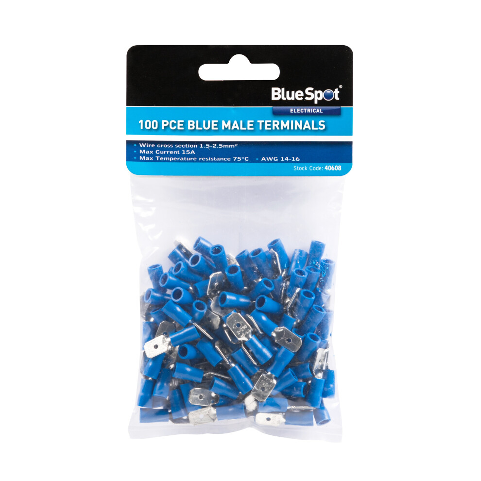BlueSpot 40608 100 Piece Male TerminalsBlueSpot 100 PCE Blue Male Terminals are constructed from brass and PVC. £5.63OnBuy.comDelivery: in United Kingdom ReportBuy!