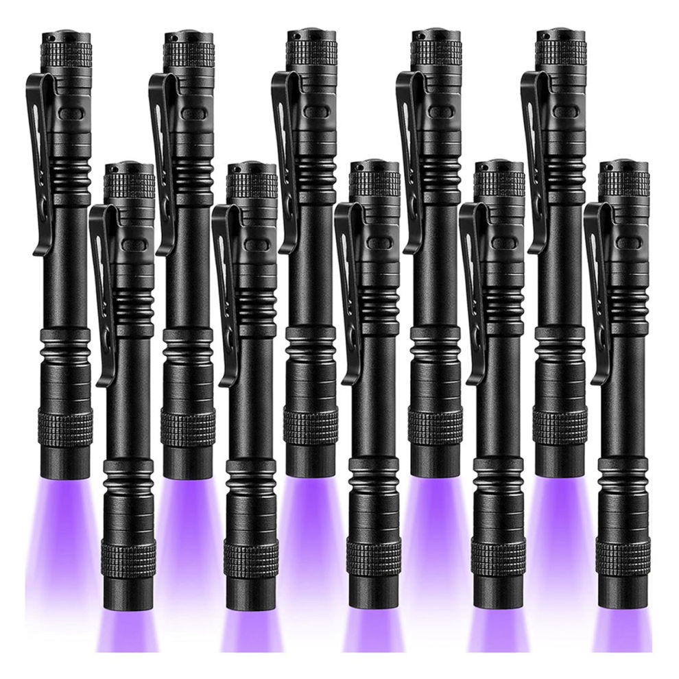 Markenlos 10 Pack UV Black Light Mini 395nm Pen Light with ClipPACKAGE INCLUDE: Comes with 10 pack blacklight flashlights, each uv flashlight is powered with 2 standard AAA batteries (batteries not included). £13.18OnBuy.comDelivery: in United Kingdom ReportBuy!