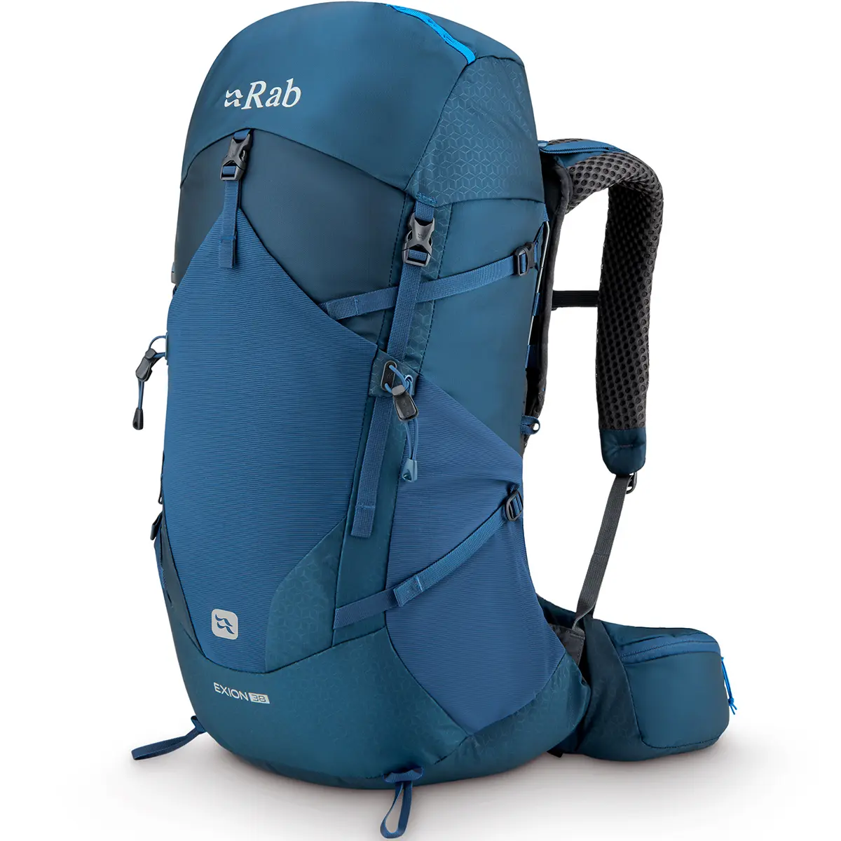 Rab Hiking Bag Exion 38 QAP-73-TMBfrom £180.00 up to £191.65 Compare prices2→Equipped with all the features in a simple and sleek design, the Exion ND35 backpack is very versatile and accompanies you anywhere, from demanding hiking days in any season to summer nights of wild c more→amping. The adjustable carrying system, with its thermoformed harness and dual-density foam, ensures full contact with your back while providing cushioning support and reducing bulk for maximum comfort. It results in a lightweight construction suitable for heavy loads that offers instant comfort that lasts over long distances. With an eye-catching embossed print and a practical and very comfortable design, the Exion ND35 backpack is the ideal companion for relaxed mountain outings. Narrower than …