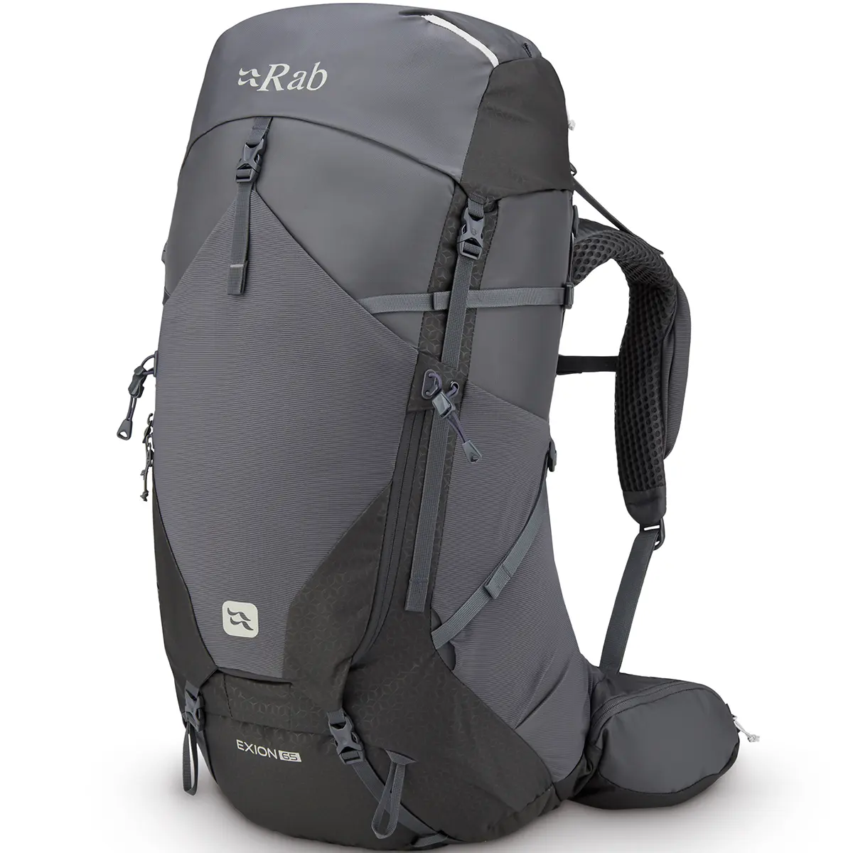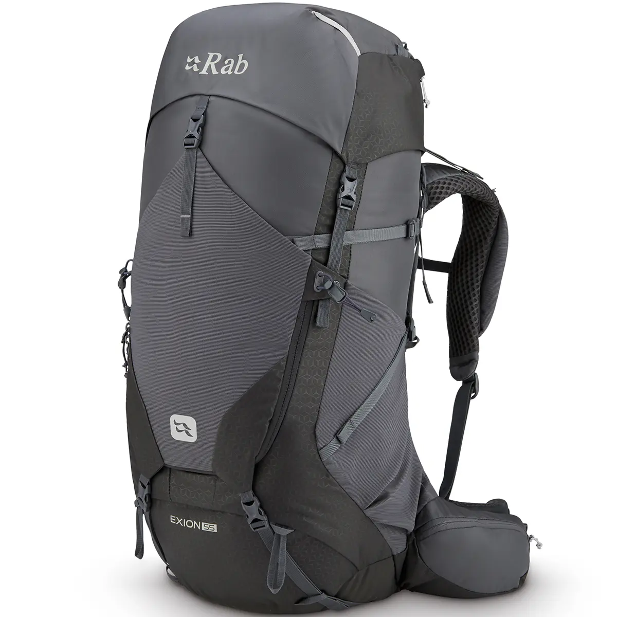 Rab Hiking Bag Exion 55 QAP-77-AGRfrom £235.21 up to £255.07 Compare prices2→Equipped with all the features in a simple and clean design, the Exion 55 backpack is very versatile and accompanies you everywhere, from hiking trips to multi-day expeditions from hut to hut. The adj more→ustable carrying system, with its thermoformed harness and dual-density foams, ensures full contact with your back while providing cushioning support and reducing bulk for maximum comfort. This results in a lightweight construction suited for heavy loads that offers instant comfort that lasts over long distances. With an attractive embossed print and a practical, very comfortable design, the Exion 55 backpack is the perfect companion for peaceful mountain excursions.The pull-adjustable belt makes …