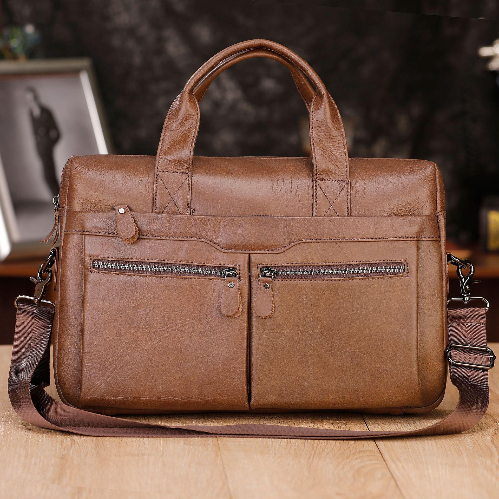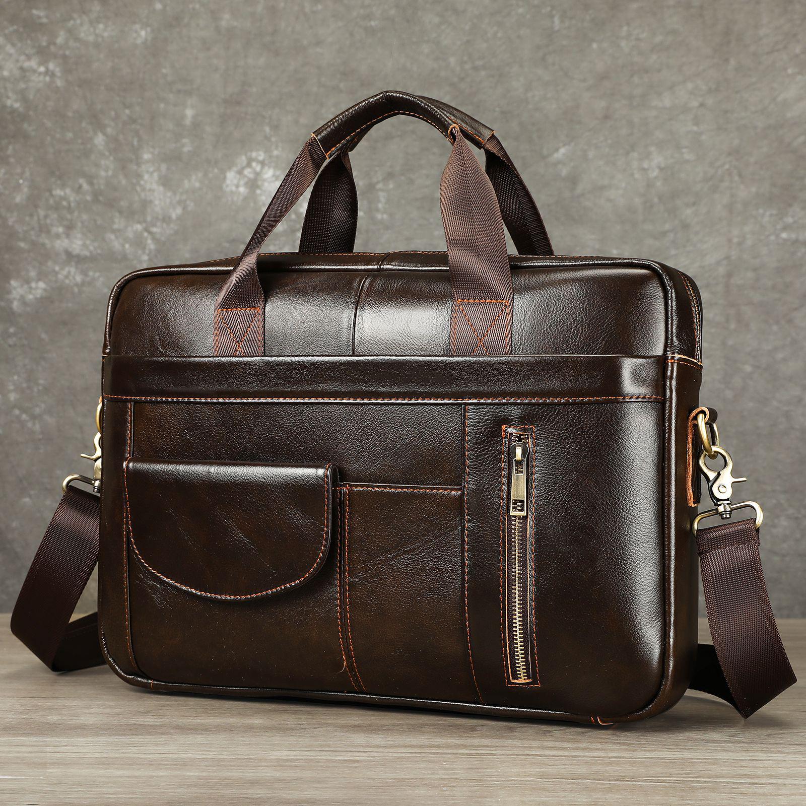 Men's Genuine Leather Business Briefcase, Top Layer Cowhide Handbag, Lawyer's Laptop Bag, Single Shoulder Crossbody Large Ba30.00Buy!£Joom UKDelivery: to United Kingdom ReportThis elegant briefcase is crafted from premium genuine leather, offering a sophisticated and professional look ideal for business professionals. Its top layer cowhide construction ensures durability a more→nd a smooth finish, while the spacious interior provides ample room for organizing your laptop, documents, and other essentials. Designed for versatility, this bag can be worn as a single shoulder crossbody, making it both a practical and stylish choice for lawyers and executives on the go. Material: Genuine Leather Cortical Features: Top layer of cowhide Pattern: Solid Color Popular Elements: Sewing thread Lining Texture: Polyester Cotton Applicable Scene: Business travel Computer