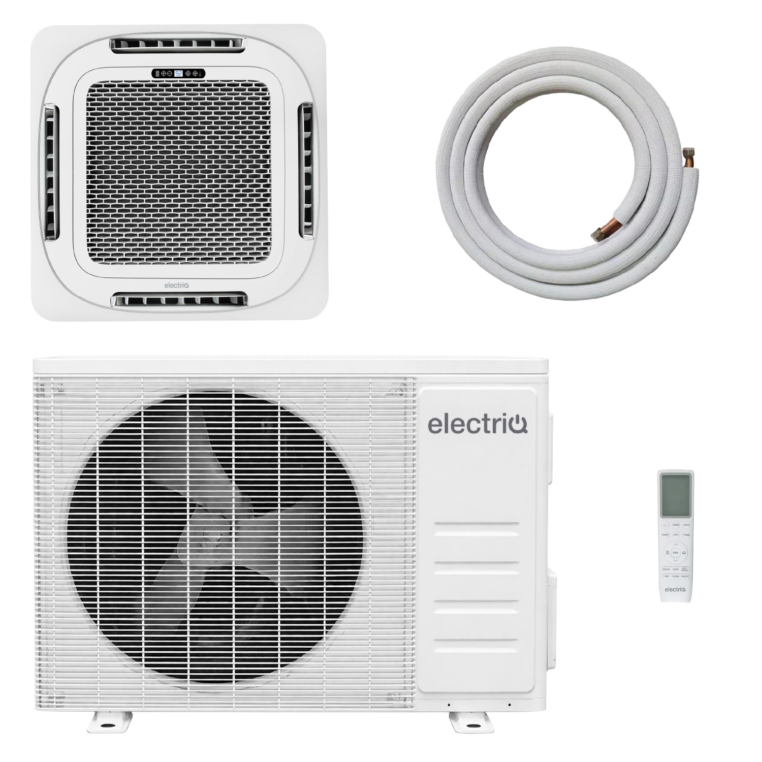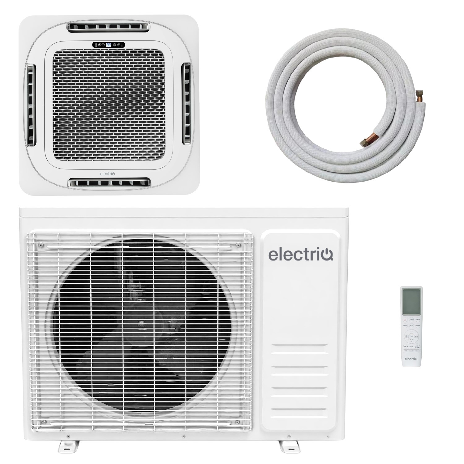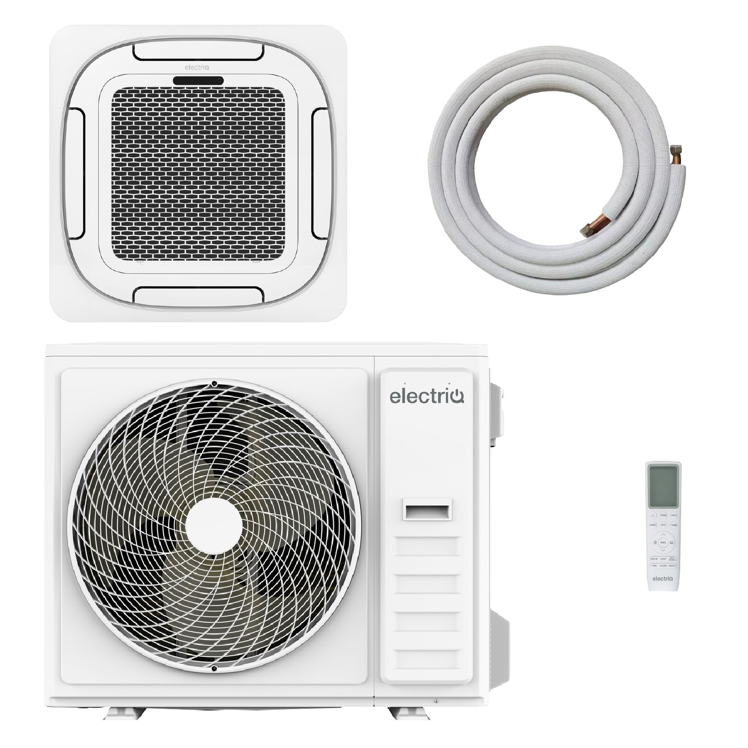 electriQ iQool 18000 BTU Smart A++ Single Split Ceiling Cassette Air Conditioner with Heat Pump - 5m Pipe Kit Included Iqool. This . electriQ ceiling cassette air conditioner. is the perfect solution for offices or combined installs in large areas. It frees up wall space and is designed to fit standard ceiling tiles for . quick and easy installationIt's perfectly suited to spaces where there's a limited ceiling void such as offices and due to the low noise level you'll hardly notice when it's on.The . Wi-Fi functionality. can help you save money on your energy bills too - schedule this clever AC around your routine so it never wastes power and control remotely from your phone or smart assistant (. Google Home and; Alexa compatible. ). It gives you instant control at your fingertips - after all your phone is always … £849.98AppliancesDirect.co.ukDelivery: in United Kingdom ReportBuy!