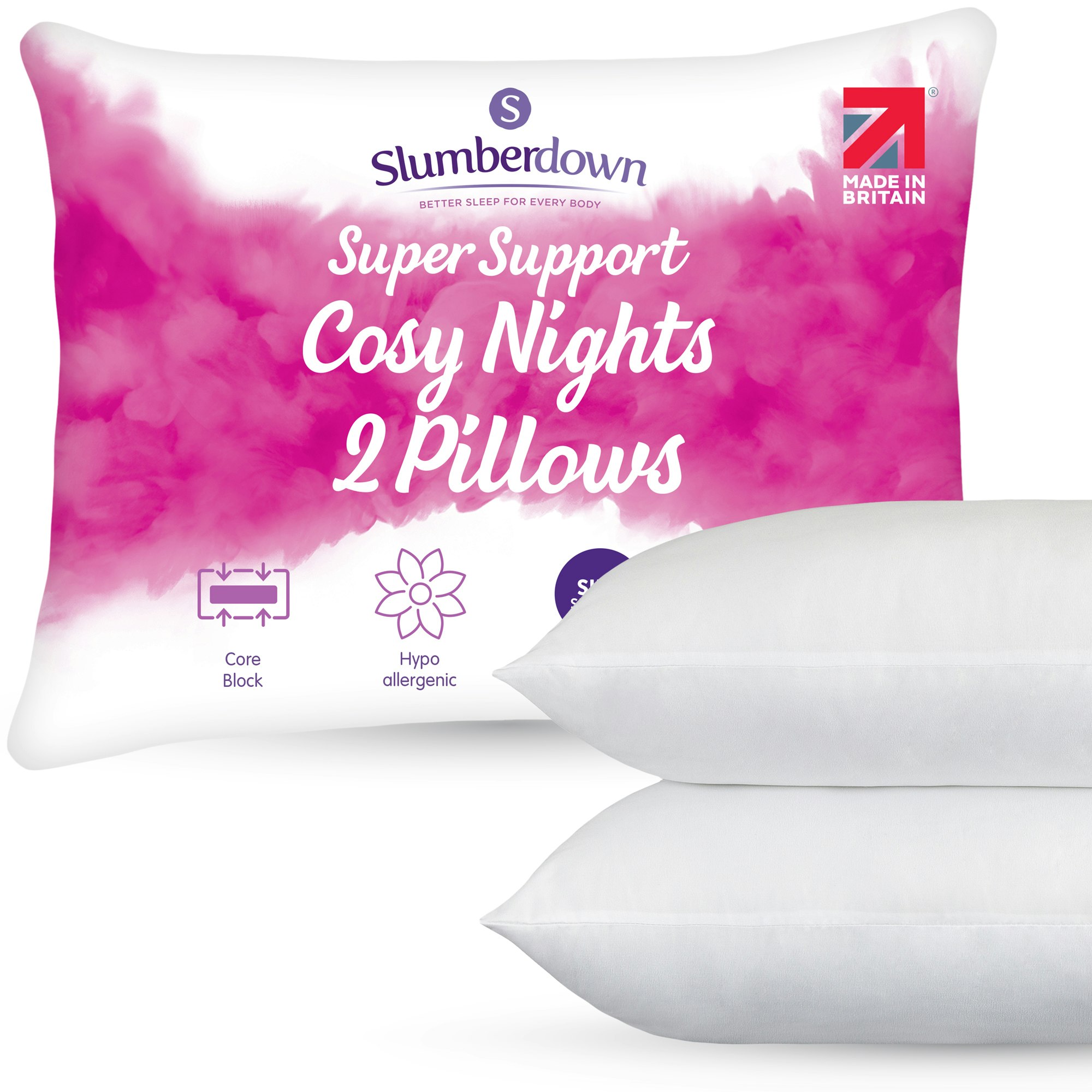 Slumberdown Rackhams Cosy Nights Super Support Firm Support - Firm - 2from £17.03 up to £20.99 Compare prices5→For nights that demand more from your pillow, the Cosy Nights Super Support Firm Support Pillow delivers unmatched structure wrapped in cosy softness. It’s the ideal choice for sleepers who want all t more→he firmness with none of the compromise on comfort. Extra-Firm Support Core – Built to maintain shape and alignment for a deeper, more restful sleep Snug Cosy Cover – Soft-touch fabric brings warmth and comfort with every snooze Hypoallergenic Design – Kind to skin and great for allergy-prone sleepers Machine Washable – Durable comfort that’s easy to refresh again and again Whether you're propped up for a bedtime read or winding down after a long day, this pillow has your back—literal…
