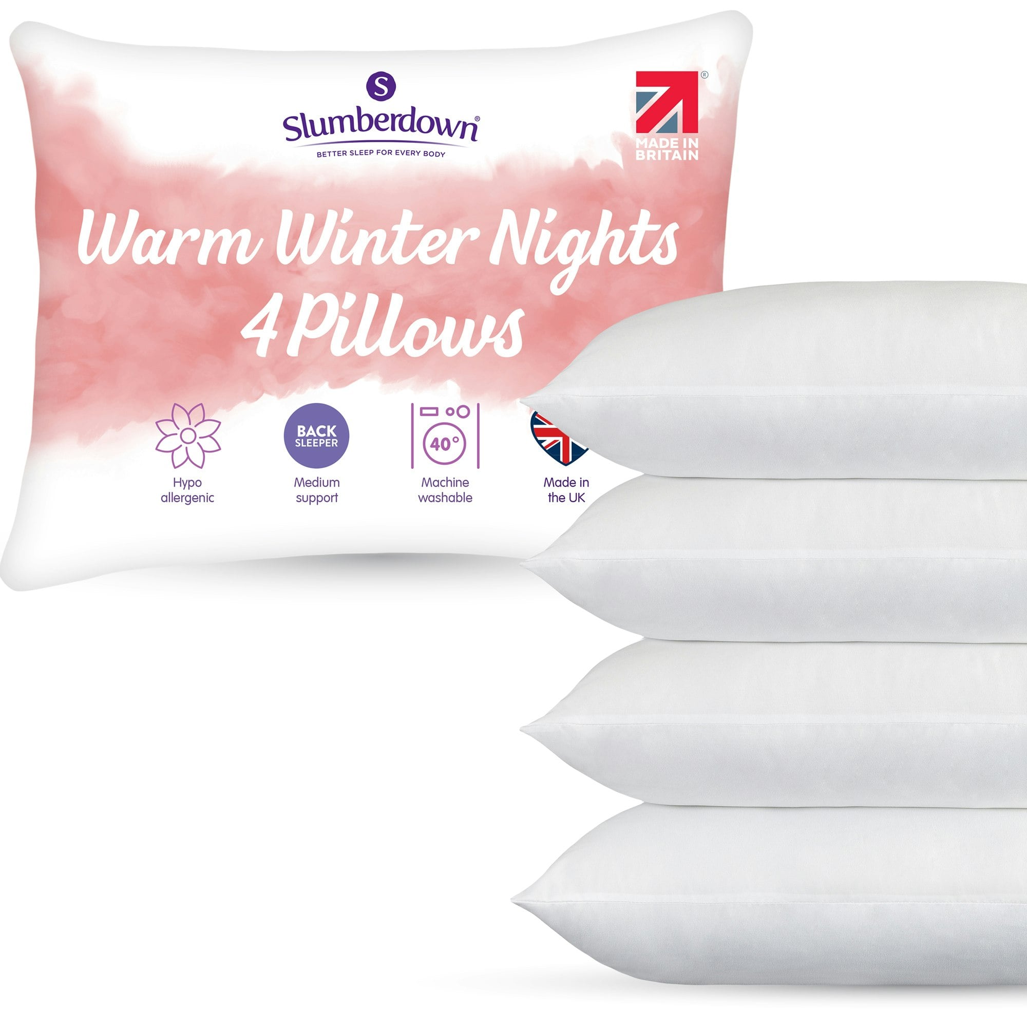 Slumberdown Rackhams Warm Winter Nights - 4 Packfrom £19.17 up to £23.99 Compare prices3→Embrace the colder months with the Slumberdown Warm Winter Nights Pillows, designed to deliver indulgent comfort and reliable support when you need it most. Available in convenient 2-pack and 4-pack o more→ptions, these pillows are perfect for refreshing your bedding essentials or ensuring every bed in the home is winter-ready. Each pillow is filled with a plush, insulating fibre that helps retain warmth while maintaining a soft, supportive feel. The gentle loft cradles your head and neck, offering balanced comfort that suits a wide range of sleepers. Whether you prefer to sleep on your back, side, or somewhere in between, these pillows are crafted to provide consistent support without feeling too …