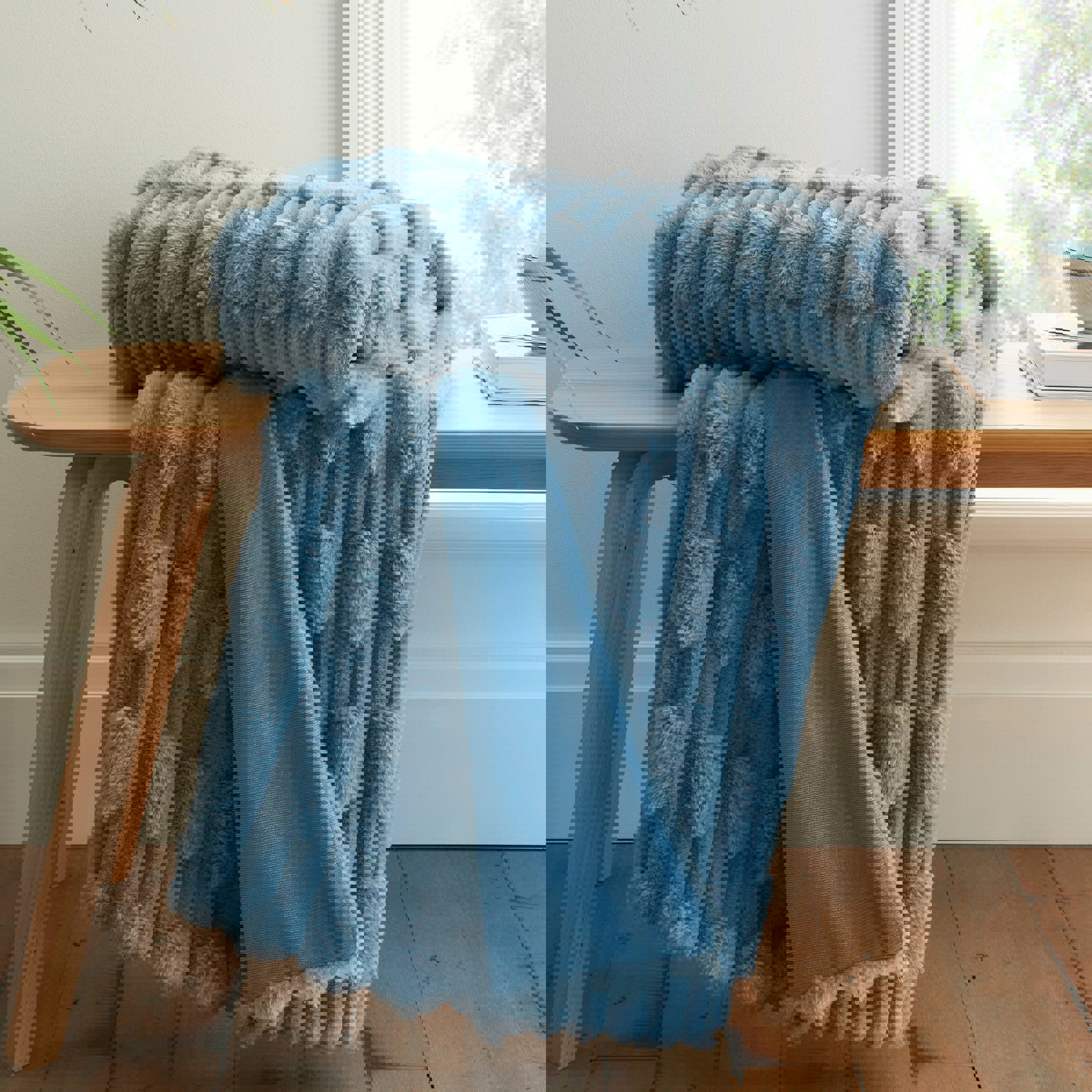 Rackhams So Soft Carved Faux Fur Throw - Blue - 150 x 200 cmfrom £35.00 up to £36.00 Compare prices2→The epitome of comfort and elegance, this sumptuously soft carved large size throw is crafted from luxuriously warm faux fur is the accessory for adding an indulgency and comfortable look to your home decor.