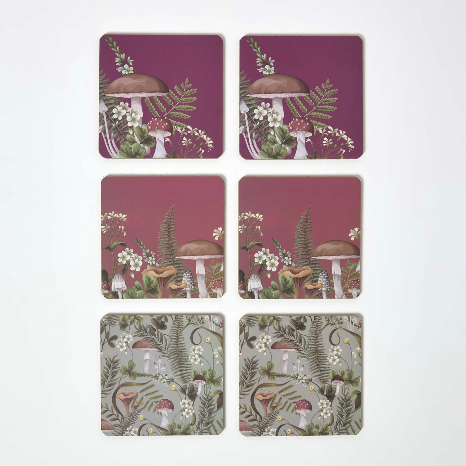 Homescapes Rackhams Cork Coasters with Mushroom Design, Set of 6from £4.99 up to £8.99 Compare prices4→HOMESCAPES Mushroom-Themed Coasters Set of 6 with Storage Box – Rustic Woodland Design Bring countryside charm to your dining décor Infuse your home with natural beauty using HOMESCAPES’ whimsical mus more→hroom-themed coasters set of 6. Perfect for lovers of cottagecore and rustic décor, each tea coaster features beautifully illustrated mushrooms surrounded by wild flora and fauna, set against warm red, green, and orange backgrounds (two coasters of each design). A perfect blend of function and style for everyday use. Durable, heat-resistant and easy to clean Expertly crafted from a high-quality blend of MDF, cork, and paper, these table coasters are non-slip, heat-resistant, and designed for long-l…