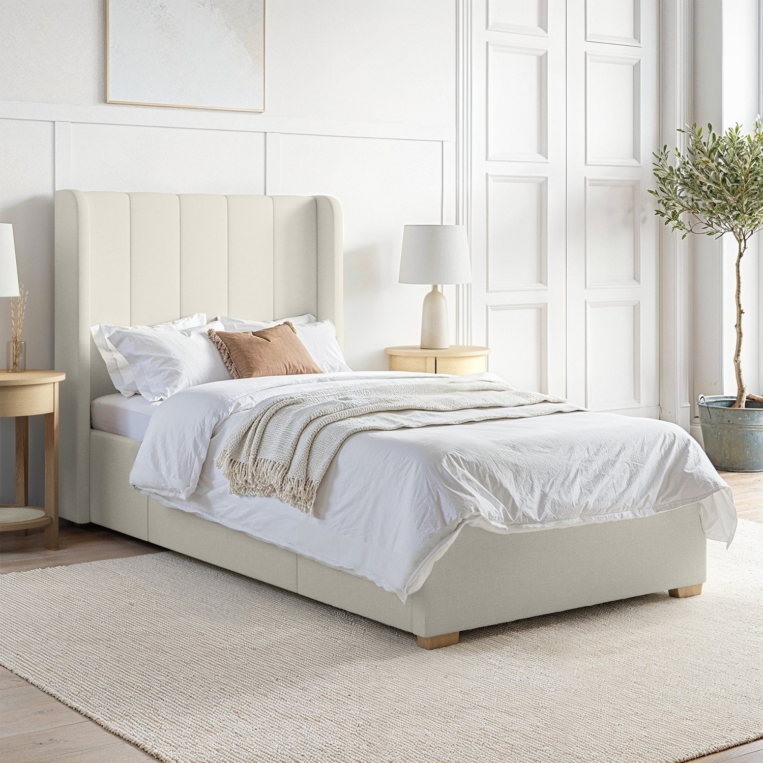 Phoebe Cream Fabric Single Bed Frame with Storage Drawer - Phoebe PHB003249.97Buy!£Furniture123.co.ukDelivery: in United Kingdom Report. All about me Stylish Winged Headboard . Features sophisticated vertical stitching and a winged design headboard that adds a refined designer touch to any bedroom. High-Quality Woven Upholstery . S more→oft and durable fabric in a versatile cream shade complements various interior styles. Built-in Storage Drawer . A spacious underbed drawer with castor wheels for easy opening and can be positioned on either side during assembly to complement your room layout. Sprung-Slatted Base . Provides excellent support for the mattress promoting airflow for added comfort and longevity.Make a stunning impression in any bedroom with this gorgeous Phoebe single bed. Perfect for older kids and beyond it features …