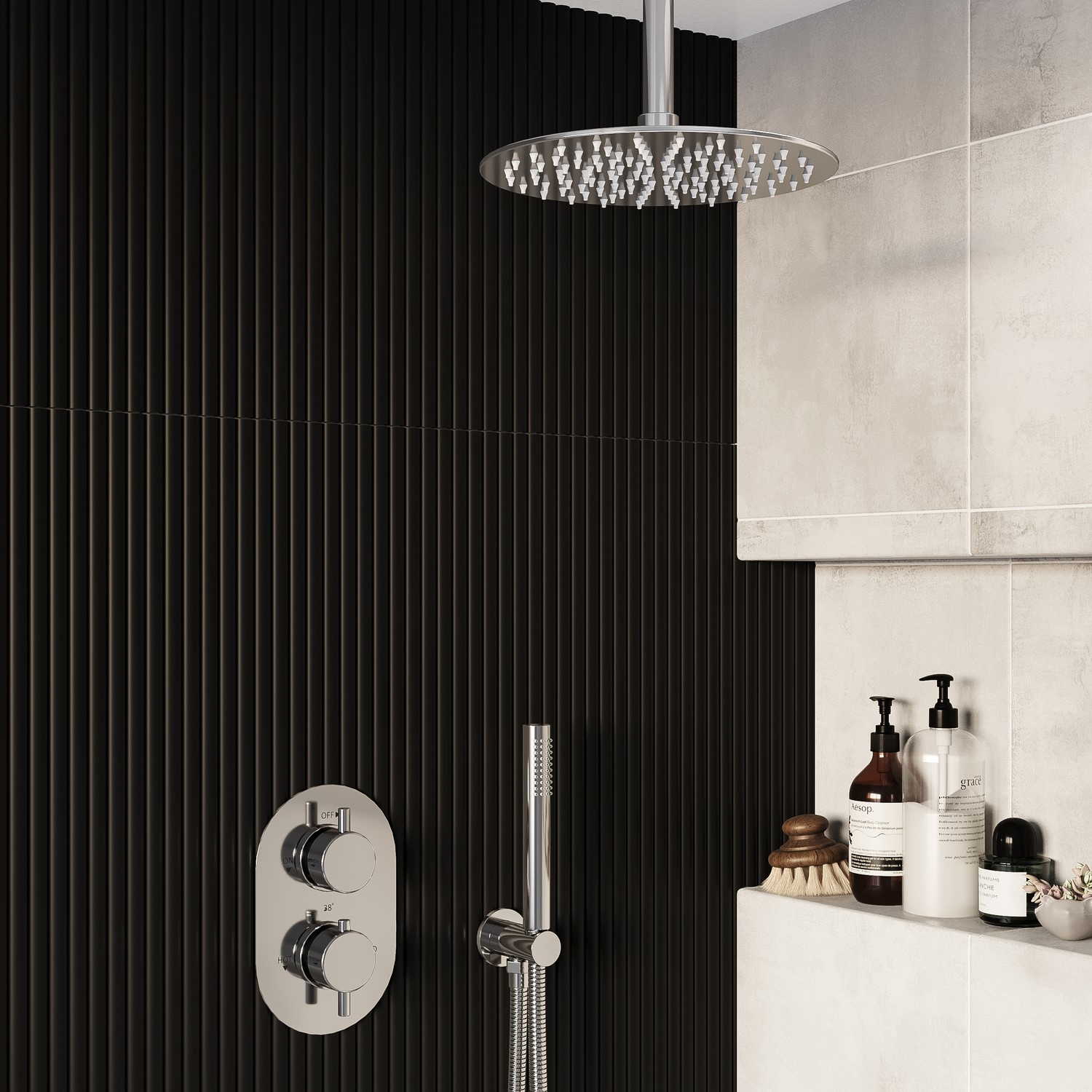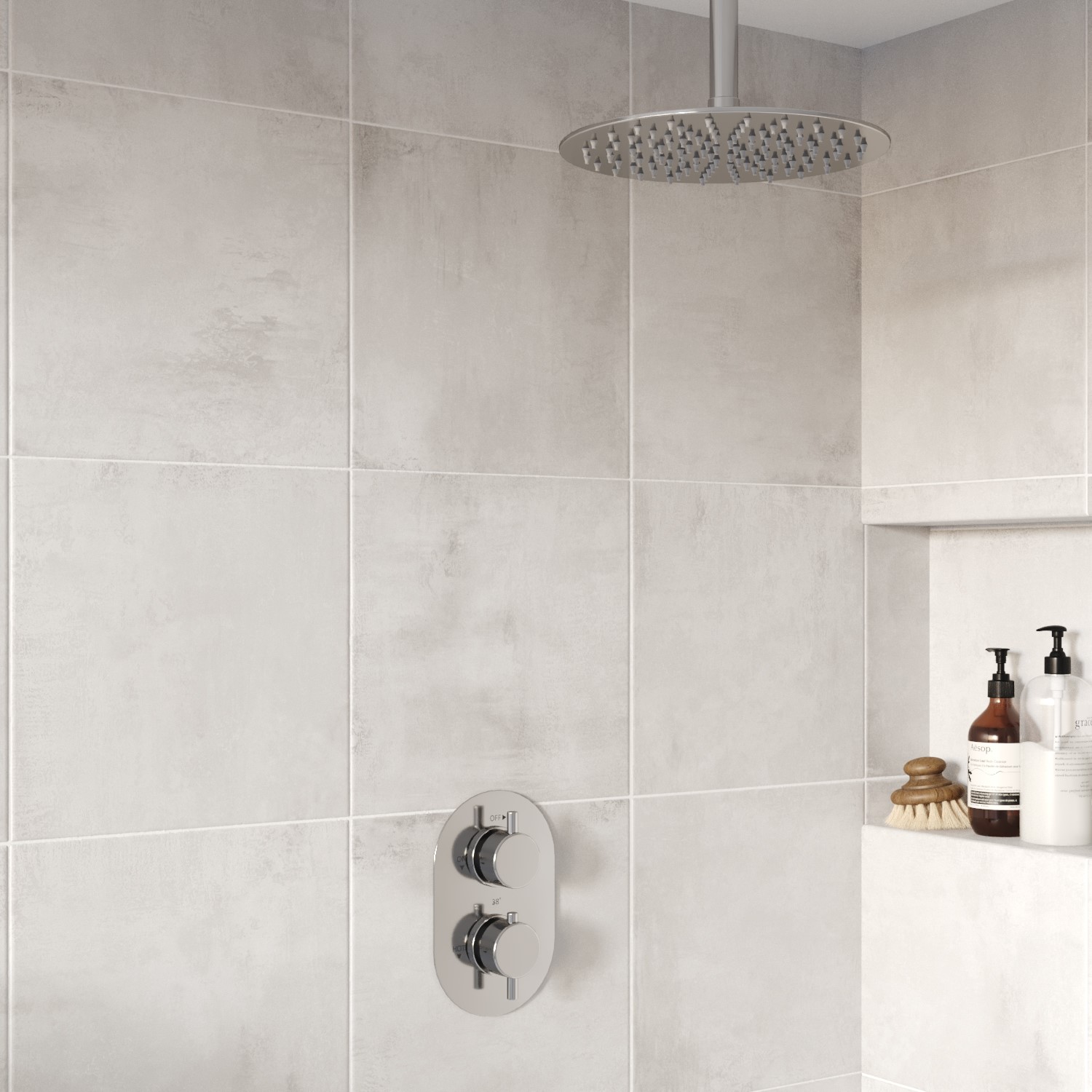 Chrome 2 Outlet Ceiling Mounted Thermostatic Mixer Shower Set With Hand Shower - Arissa Chrome BUN/BeBa26810/96150129.97Buy!£BetterBathrooms.comDelivery: in United Kingdom ReportAll about me . This Arissa shower bundle in polished chrome is the perfect fit for a modern minimalist bathroom recessed for a streamlined look.This pack includes overhead shower with 300mm ceiling mo more→unted head 2 outlet valve and shower hose with bracket.It is manufactured to an exceptional finish and designed for a sophisticated look. It incorporates a modern design and the highest quality brass for a highly reliable operation. With a modern polished chrome finish this shower will suit most of our products to help you build your ideal suite. The electroplated finish strengthens the shower's resistance to rust and corrosion boosting longevity and enduranceNeed to know - valve . Tap Type .