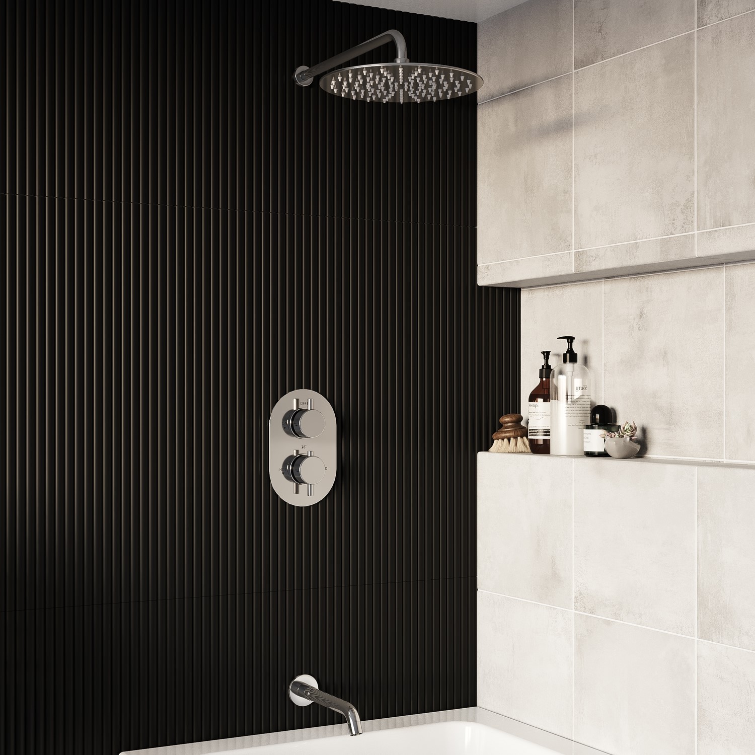 Chrome 2 Outlet Wall Mounted Thermostatic Mixer Shower Set With 300mm Shower Head and Bath Filler Spout - Flow Chrome BUN/Be129.97Buy!£BetterBathrooms.comDelivery: in United Kingdom ReportAll about me . This Arissa shower bundle in chrome is the perfect fit for a modern minimalist bathroom recessed for a streamlined look.This pack includes overhead shower with300mm wall mounted head 2 more→outlet valve and bath filler spout.It is manufactured to an exceptional finish and designed for a sophisticated look. It incorporates a modern design and the highest quality brass for a highly reliable operation. With a modern chrome finish this shower will suit most of our products to help you build your ideal suite. The electroplated finish strengthens the shower's resistance to rust and corrosion boosting longevity and enduranceNeed to know - Valve . Dimensions . H215 x W120 x D123.5 mm