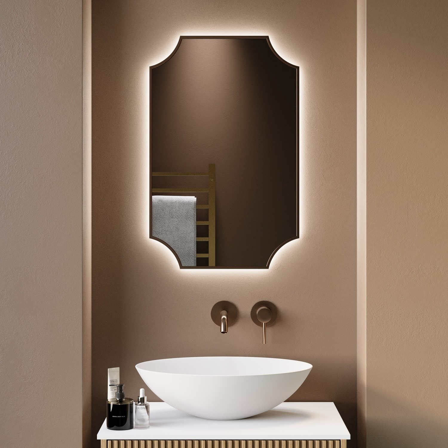 Traditional Bronze Backlit Heated Bathroom Mirror with Lights 500 x 750mm - Zeus Bronze ZEUSBR500179.97Buy!£BetterBathrooms.comDelivery: in United Kingdom ReportAll about me Classic Styling . This traditionally styled backlit mirror with lights has a thin brushed bronze frame and brings timeless charm to any bathroom Adjustable Lighting . Featuring integrat more→ed backlit LED lighting you can customise the brightness and choose from three colour temperatures- warm white natural white or cool white. Heated Demister Pad . Enjoy a clear fog-free mirror after every shower operated conveniently at the touch of a button. Touch-Free Operation . Activated by a discreet motion sensor on the bottom right hand corner it offers hygienic hands-free control. Flexible Fit . Designed to be installed either portrait or landscape giving you more layout options. Elevate …