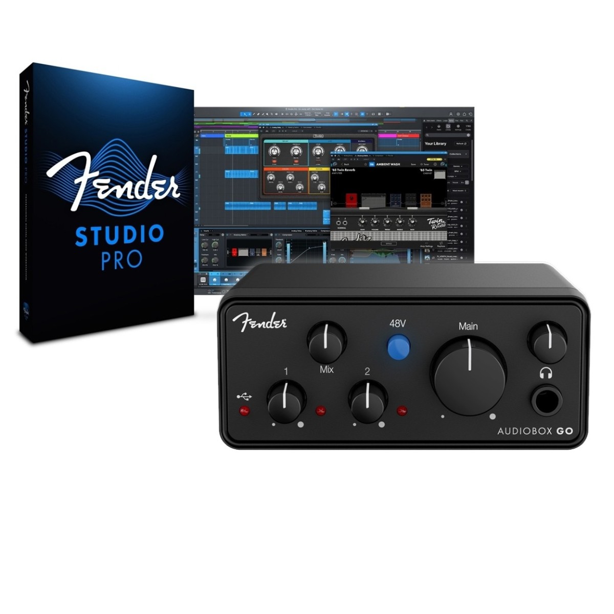 Fender Audiobox GO Audio Interface 2777700712The Fender AudioBox GO is a lightweight ultra-compact USB audio interface designed for musicians content creators and podcasters who need professional-quality sound on the go. Featuring a high-resolution 24-bit/96 kHz converter and an XMAX-L preamp it provides clear high-headroom gain making it ideal for recording vocals instruments and voiceovers. The interface includes a combo mic/line input a dedicated instrument input and main line outputs ensuring flexible connectivity for various audio setups. With direct monitoring capabilities the AudioBox GO eliminates latency allowing for real-time tracking without delays. The bus-powered design requires no external power supply making it a convenient …Price from £67.49 up to £70.80 Compare prices and buy Fender Audiobox GO Audio Interface 2777700712 Amazon.co.uk (United Kingdom) →£67.00Gear4Music.com (United Kingdom) →£71.00Compare prices2→