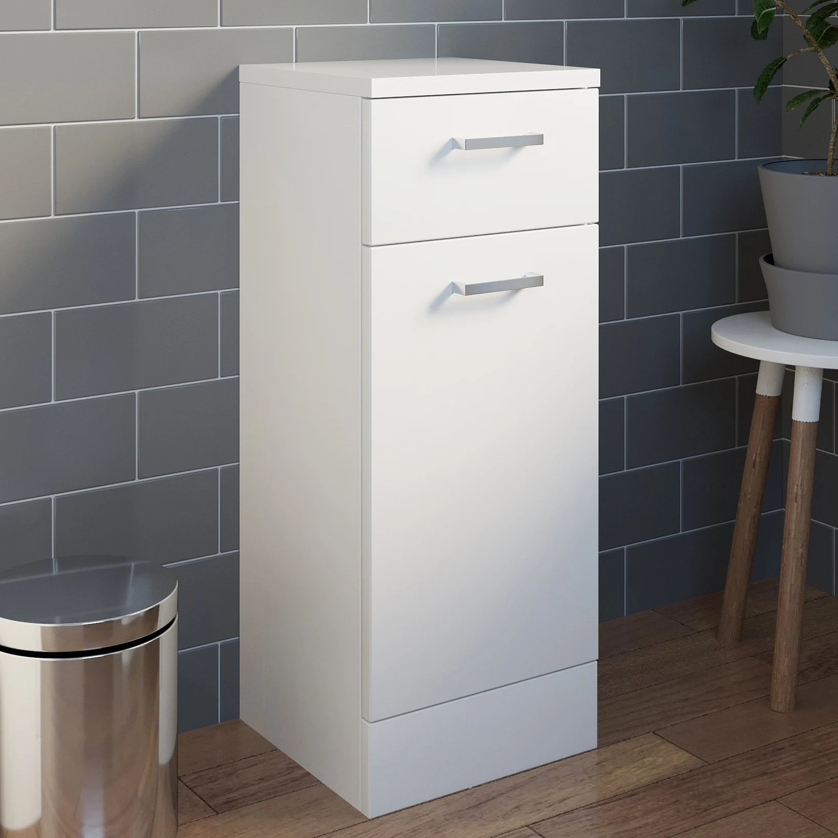 Alpine White Gloss 4 Drawer Freestanding Bathroom Storage Unit - 250 x 300mm HWMDW3001Key Features:Slim bathroom storage unitWhite gloss finishStylish chrome handles4 drawers for storageDimensions: 250 (W) x 298 (D) x 766 (H)mm3-year guarantee 4 drawer unit If you're lucky enough to have enough floor space in your bathroom then this 4 drawer unit is the perfect way of utilizing it with storage. The unit has 4 drawers that provide plenty of space to store your bathroom products and cosmetics, keeping your bathroom looking neat and tidy. Not only is this unit practical, it's incredibly stylish with its gloss white finish which will match perfectly with your sanitaryware. White gloss finishWhite will always be and always has been a truly classic colour fit for bathroom suites. Bathrooms … £99.97Plumbworld.co.ukDelivery: in United Kingdom ReportBuy!