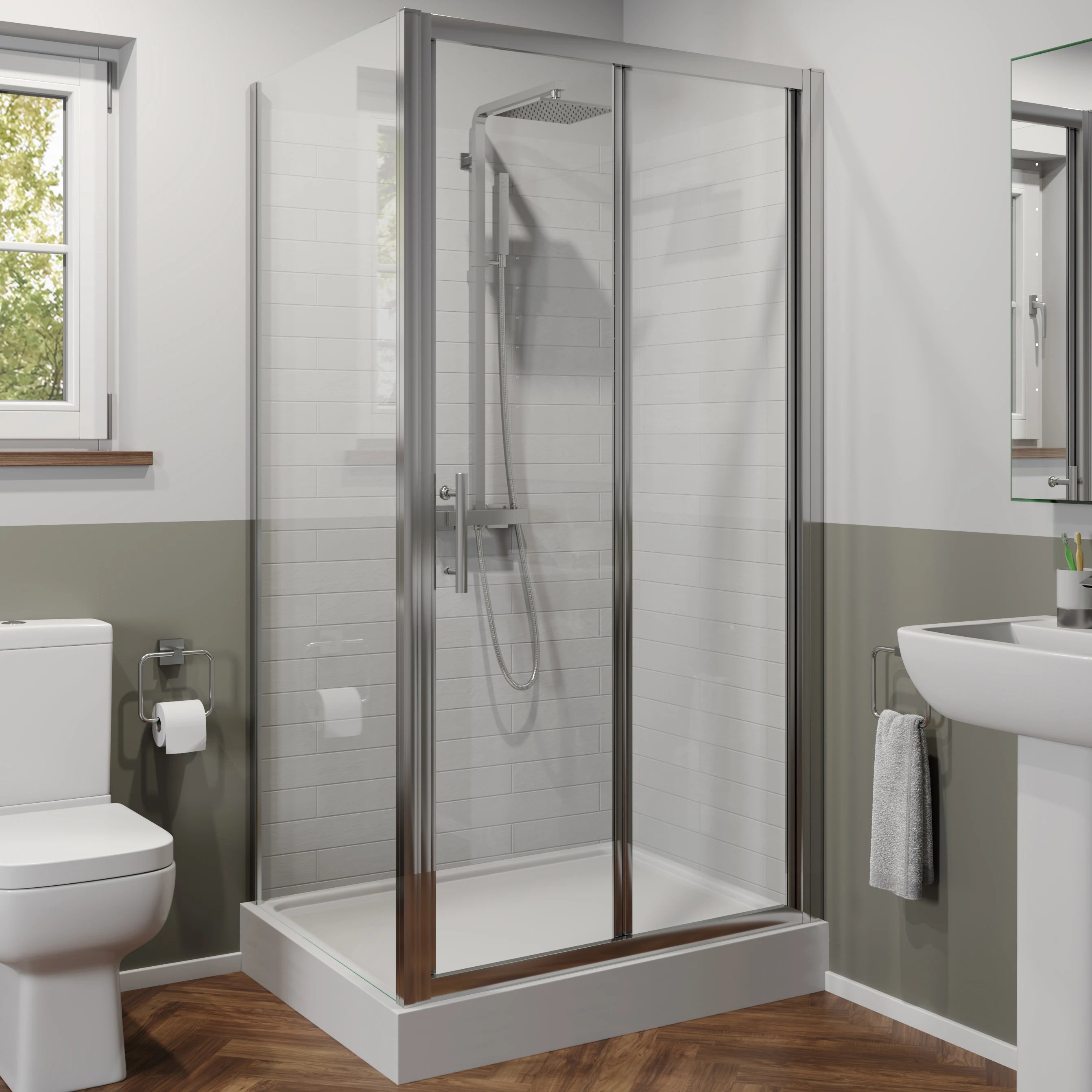Luxura Pivot 700 x 700mm with Tray - 6mmKey FeaturesLightweight chrome frame6mm safety glass20mm side panel adjustability1850mm shower door heightD-shaped handlesQuick and easy to installReversible doors10 year guarantee (seals and moving parts are covered for 12 months)What's Included:Luxura Pivot Shower Enclosure 700 x 700mm - 6mmLuxura Side Panel 700mm - 6mmHydrolux Low Profile 700 x 700mm Square Shower Tray with WasteElevate your daily routine with the Luxura Pivot Shower Enclosure and Tray, a premium shower solution designed to enhance your showering experience while adding a touch of elegance to your bathroom décor. Crafted with style and functionality in mind, this stylish pivot shower enclosure and tray combination is the p… £289.95Plumbworld.co.ukDelivery: in United Kingdom ReportBuy!