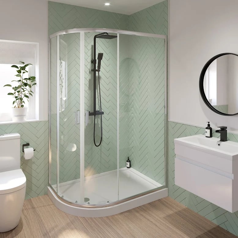 Luxura Quadrant 800 x 800mm with Tray - 6mm BlackKey FeaturesSpace saving quadrant door6mm toughened safety glass20mm side panel adjustability Lightweight matt black aluminium framesStylish easy grip door handlesSmooth top & bottom rollers10 year guaranteeWhat's Included:Luxura Quadrant Shower Enclosure 800 x 800mm - 6mm BlackHydrolux Low Profile 800 x 800mm Quadrant Shower Tray with WasteElevate your daily routine with the Luxura Quadrant Shower Enclosure and Tray, a premium shower solution designed to enhance your showering experience while adding a touch of elegance to your bathroom décor. Crafted with style and functionality in mind, this stylish quadrant shower enclosure and tray combination is the perfect addition to any bathroom. Space s… £279.95Plumbworld.co.ukDelivery: in United Kingdom ReportBuy!