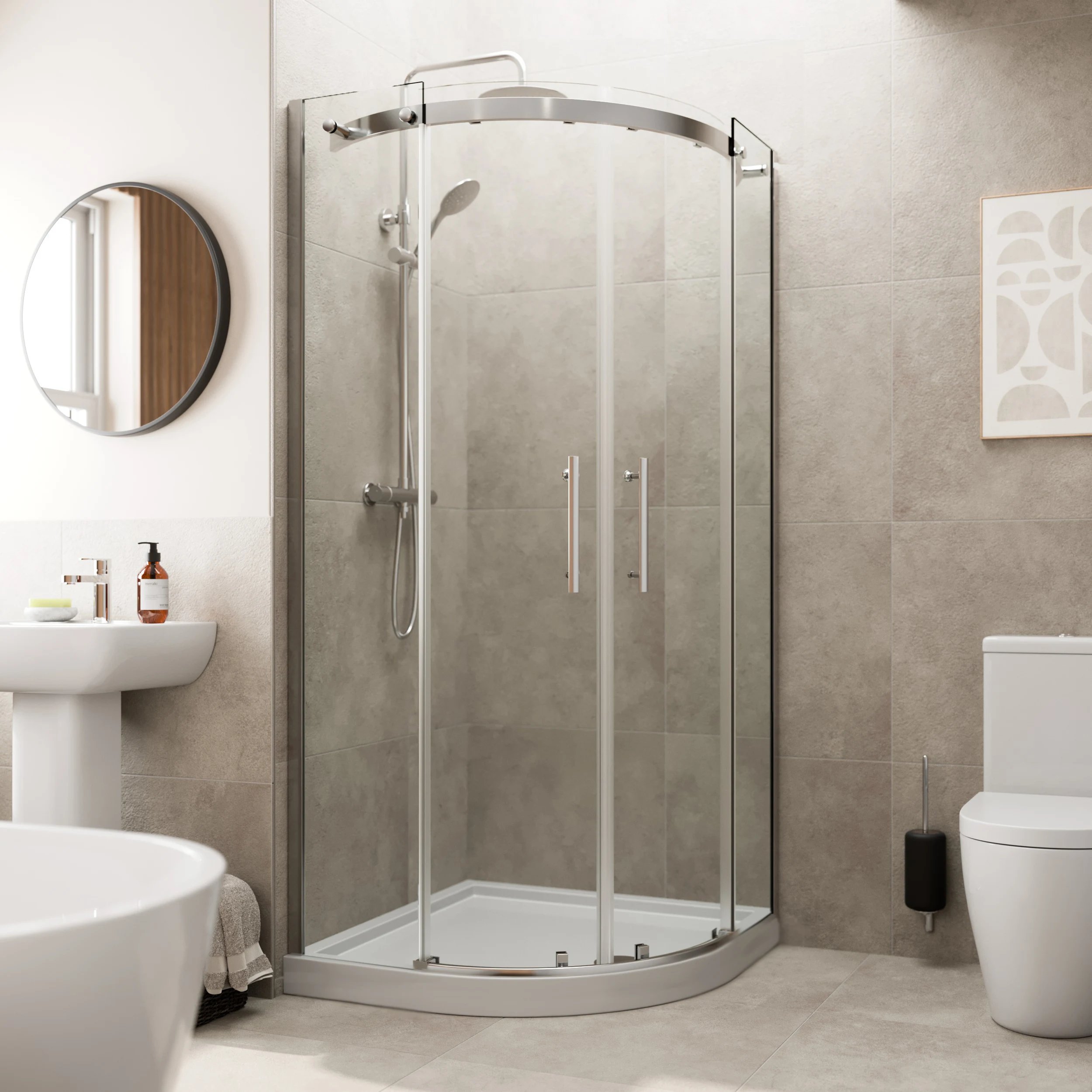 Diamond Frameless Quadrant 800mm with Shower Tray - 8mmKey Features:Stylish frameless design8mm thick safety glass1950mm enclosure heightWatertight magnetic closing mechanismEasy-grip door handlesConcealed fixingsTop & bottom mounted door rollers10 year guarantee (please note: seals and moving parts are guaranteed for 12 months)What's Included:1x Diamond Frameless Quadrant Shower Enclosure 800mm - 8mm Chrome1x Hydrolux Low Profile 800 x 800mm Shower Tray & WasteRiser kit containing:1 x Curved panel 550 radius2 x Panel joining brackets8 x Feet6 x Panel upright brackets & Hook and Loops8 x Circular base plates & adhesive pads4 x Floor fixing bracketsScrewsDiscover the Diamond frameless quadrant shower enclosure, a sleek enclosure that's perfect for …Price from £409.95Compare prices and buy Diamond Frameless Quadrant 800mm with Shower Tray - 8mm Plumbworld.co.uk (United Kingdom) →£410.00OnBuy.com (United Kingdom) →£410.00Compare prices2→