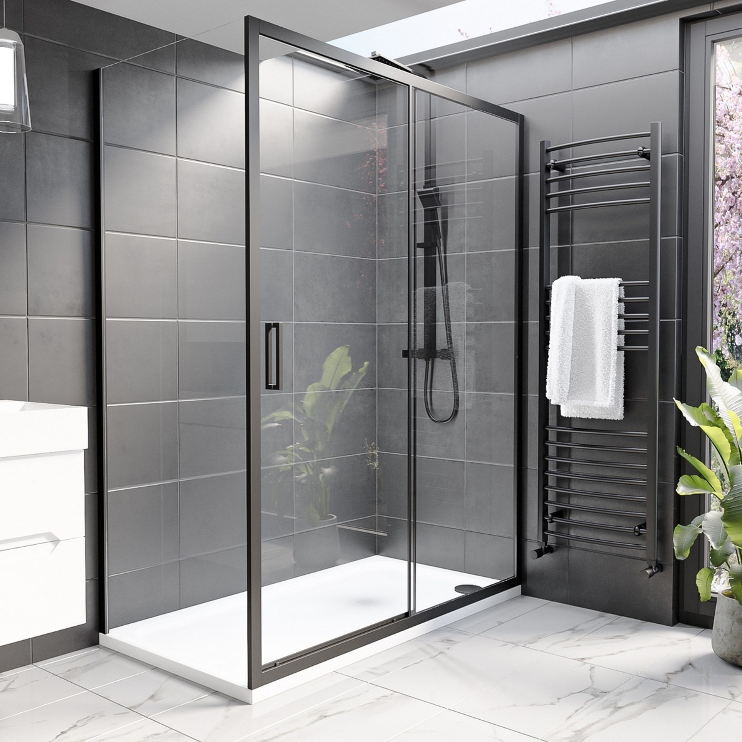 1400x900mm Black Rectangular Sliding - Pavo Black BUN/BeBa26065/77800The Pavo rectangular shower enclosure range is a great addition to your bathroom because it adds aesthetic with its matte black frame and practicality with its shape and features. It is available in a variety of sizes colours and with concealed fittings. Its single sliding door with twin rollers for a smooth sliding action can be accessed easily conserving space and fitting into tight places making it the ideal corner shower for ensuites and smaller bathrooms. The design of this black shower cubicle is also reversible. Therefore if you want the left or right wall to be the longer side of your shower enclosure then our rectangle shower enclosures can be easily fitted to either side.The 593mm … £339.97BetterBathrooms.comDelivery: in United Kingdom ReportBuy!