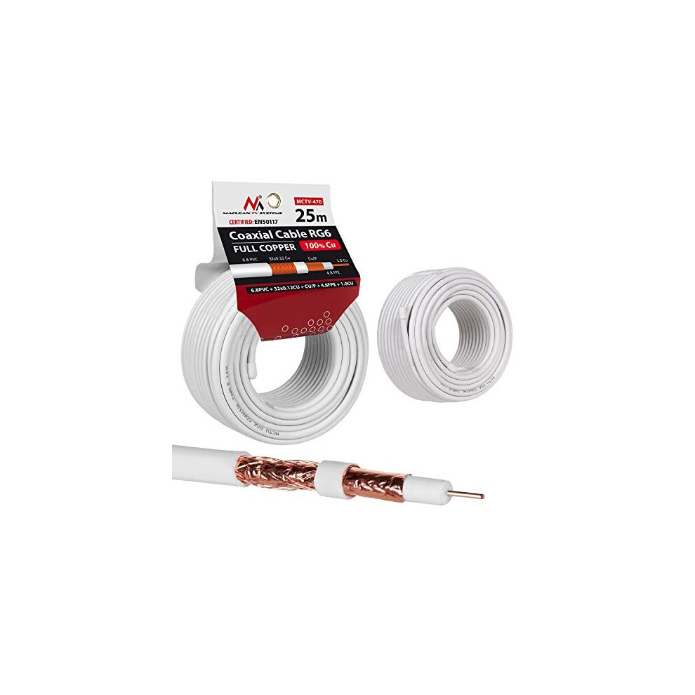 Maclean MCTV-470 Antenna Cable Coaxial Cable RG6 Pure Copper 100 Cu Coax Antenna Cable SAT Satellite Cable TV (25m)from £29.67 up to £31.90 Compare prices2→Maclean MCTV-470 Antenna Cable Coaxial Cable RG6 Pure Copper 100% Cu Coax Antenna Cable SAT Satellite Cable TV (25m)