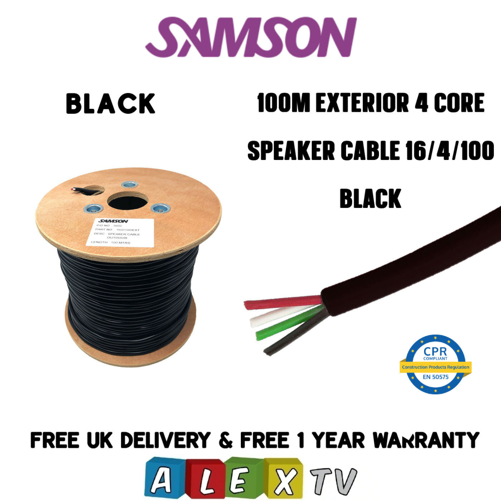 SAMSON 100m 16/4 Exterior Outdoor 4 Core Speaker Cable Drum in Black 16/4/100/EXT259.99Buy!£Onbuy.comDelivery: in United Kingdom ReportA perfect non-armoured, 4 core, certified external speaker cable for the discerning AV installer or Electrician alike. Buy and install...