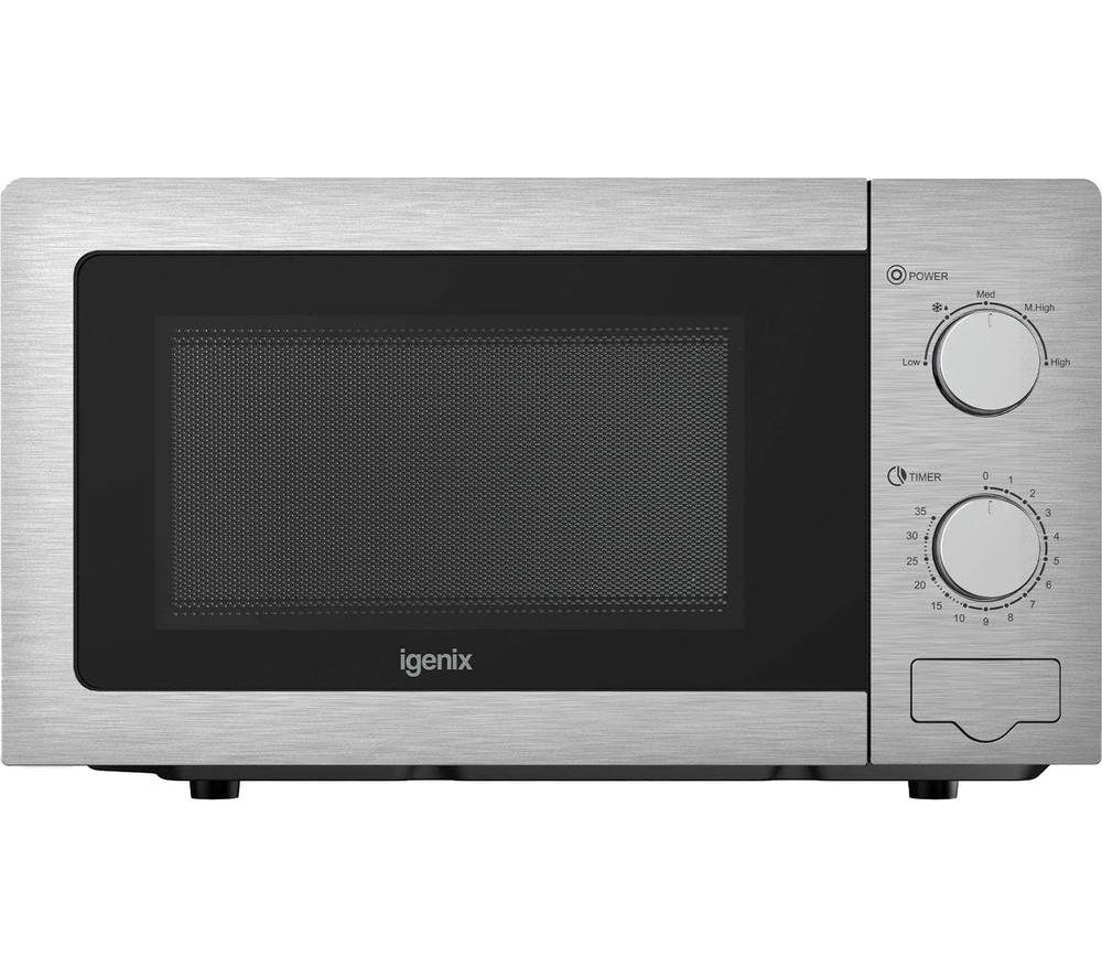 | The Igenix IGMS02080SS 20L 800W Digital Microwave delivers a perfect blend of power, convenience, and modern design. With an 800W power output and 20-litre capacity, its ideal for cooking, reheating, and defrosting a wide range of meals. The 8 auto-cook programmes take the guesswork out of meal preparation, offering pre-set options for popular foods, while 5 adjustable power levels give you precise control. The defrost function ensures frozen food is evenly thawed, and the 60-minute timer with a cooking end signal provides simple, reliable operation. Designed for everyday use, it features a 255mm turntable for even heating, a push-button door for easy access, and a durable powder-painted cavity … | Price from £74.99Compare prices and buy Igenix 20L 800W Stainless Steel Digital in Silver Compare prices2→ |